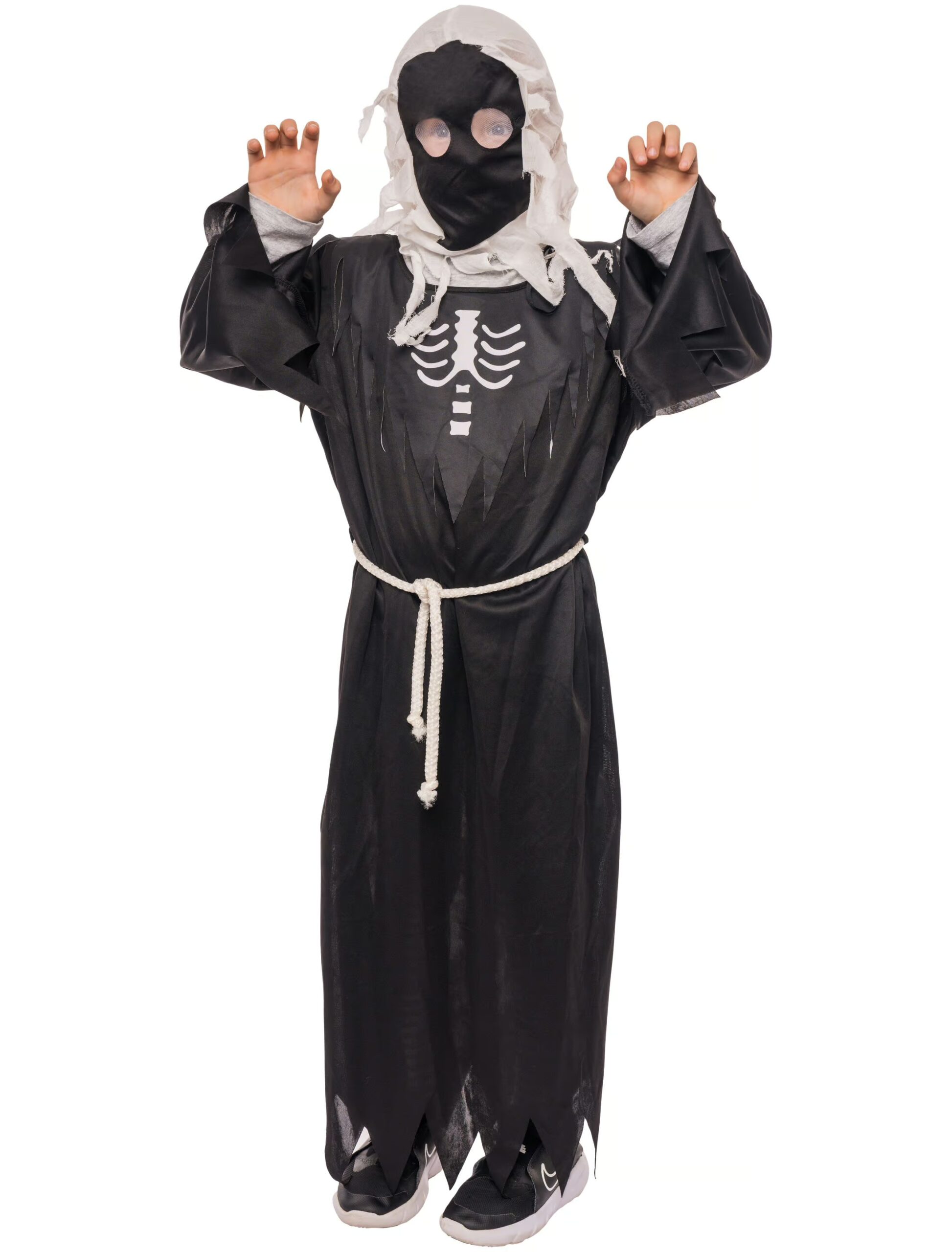 Kutte Henker mit Skelett Kinder 3-tlg. schwarz/weiß 152/164, ideal für Karneval & Fasching