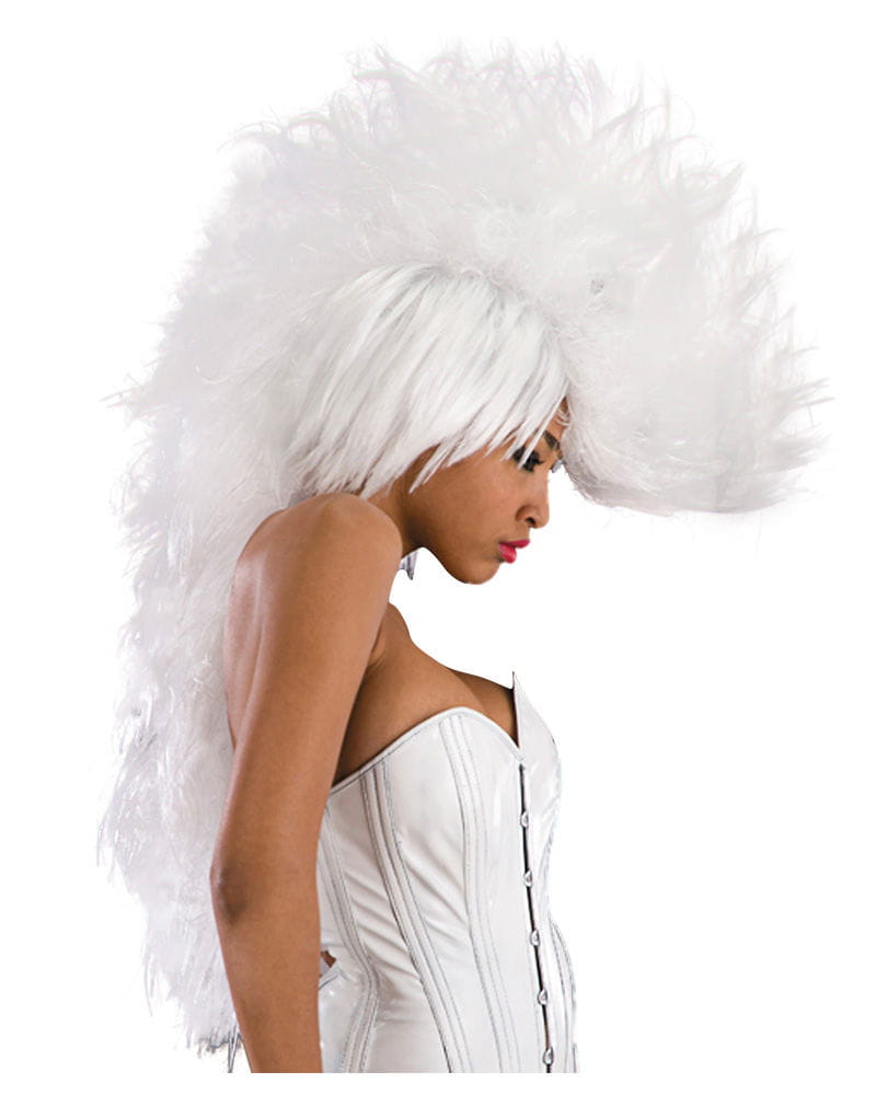 Weiße Punk Perücke mit Mohawk für Fasching und Karneval Außergewöhnliche Mohwak Perücke mit Showtanz Qualität Die weiße Punk-Perücke ist eine würdevolle Art, auch im Alter noch Sex Pistols und Ramones zu hören und den Irokesen zu schütteln. Die Weiße Punk Perücke ist aus verfilztem weißem Kunsthaar. Eine Irokesen-Frisur von 14 cm Höhe ist mitten auf dem Kopf, an den Seiten sind glatte Haare bis etwas über die Ohren. Hinten hängt ein langer verfilzter Dreadlock-Zopf bis zur Mitte des Rückens herunter. Material: Kunsthaar Farbe: weiß