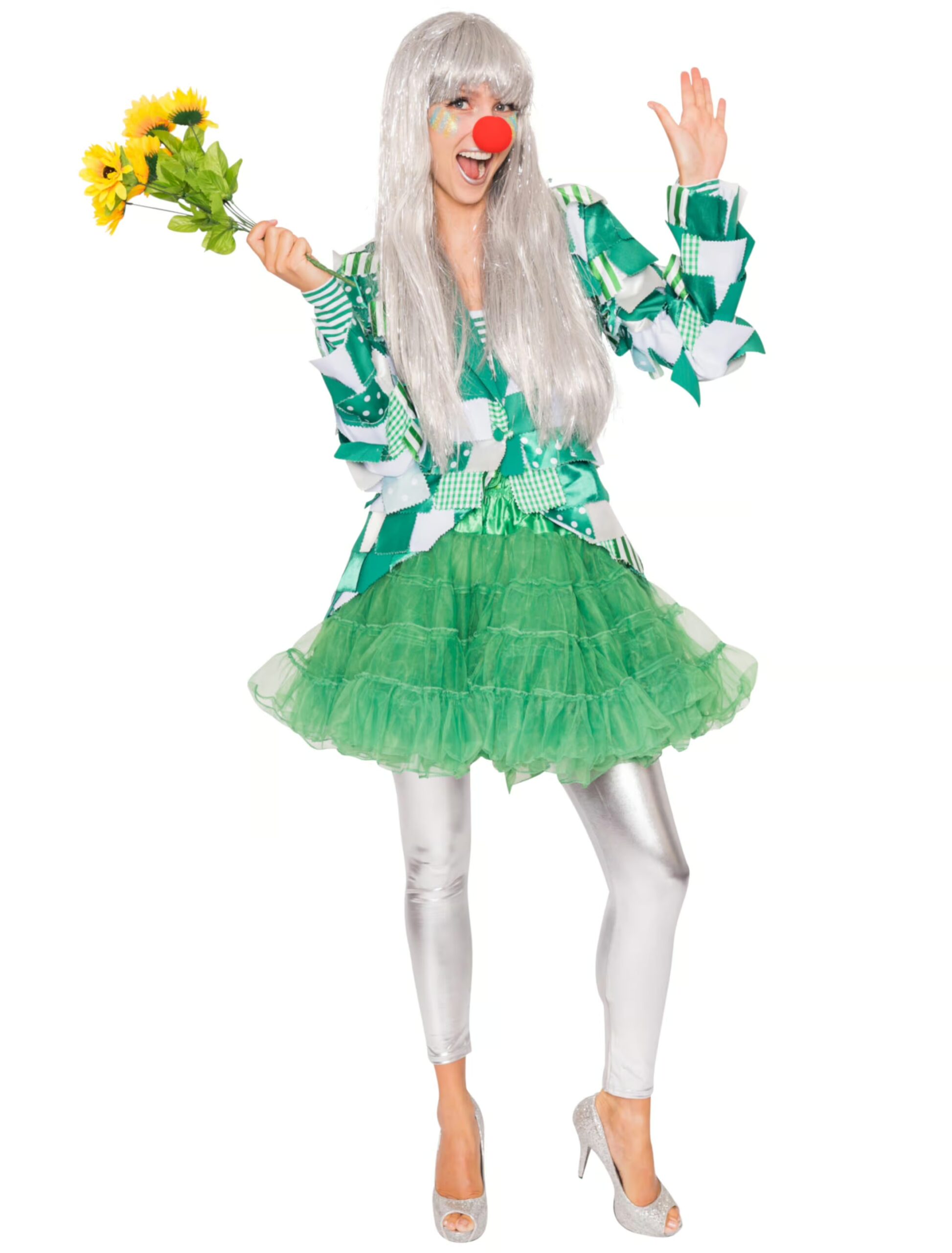 Ganz wundervoll und kreativ ist dieser, ins Auge fallende, schöne grün-weiße Lappenfrack, den Du mit vielen Kostümteilen aus unserem Shop zu wirkungsvollen Karnevals-Outfits individuell zusammenstellen kannst. Der herrliche Frack mit dem typischen Schwalbenschwanz und dem einfarbigen, grünen Revers besteht aus einem interessanten Lappen-Patchwork, der ihm seinen besonders aparten Look verleiht. Mit ihm kannst Du nicht nur zum unwiderstehlichen und witzigen Clown werden, dass die Faschingsgesellschaft begeistert, sondern auch zum Star auf Kindergeburtstagen.