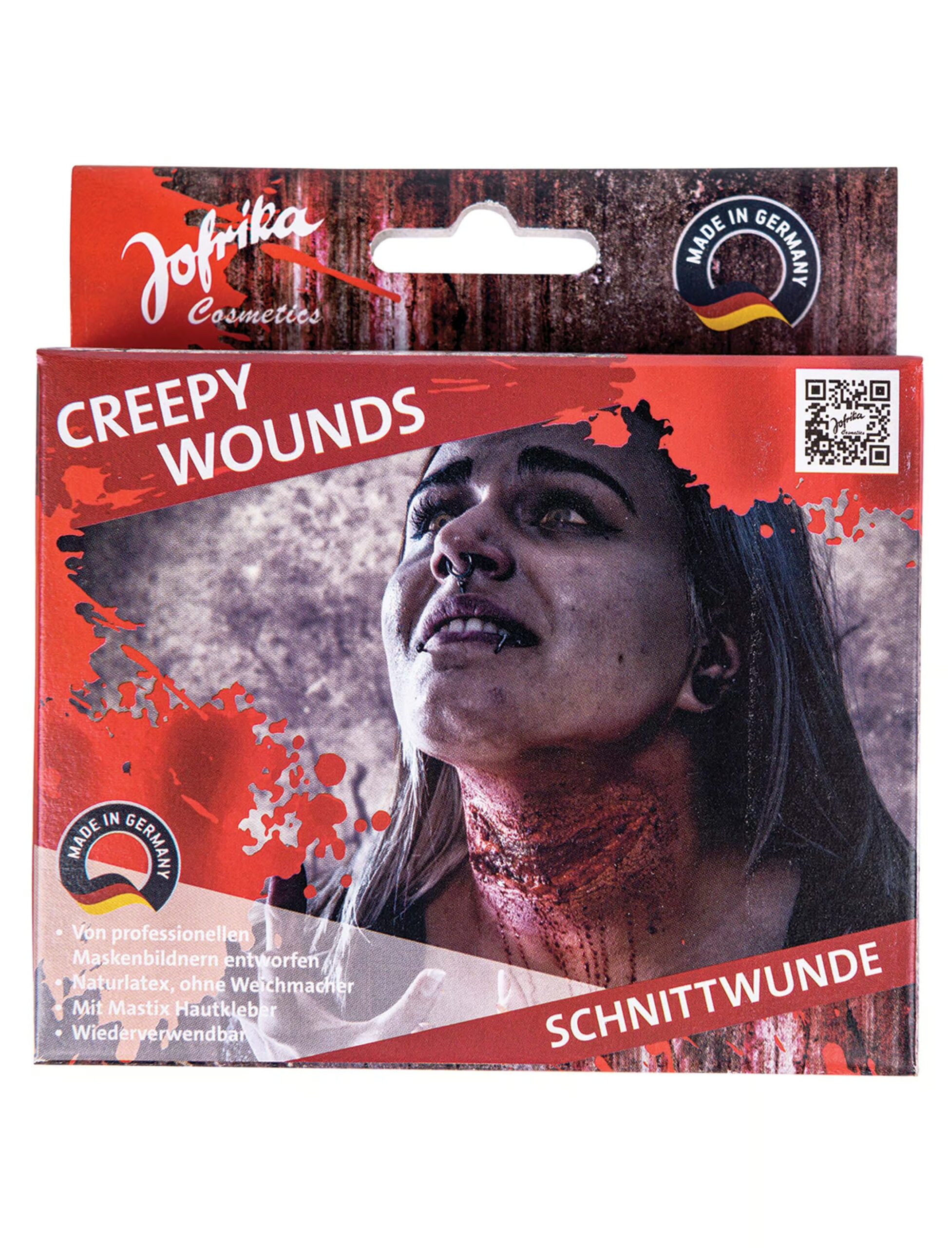 Unsere Latex Schnittwunde verleiht deinem Horror- oder Halloween-Look das gewisse Etwas – realistisch, gruselig und professionell! Die Wunde wird in Deutschland produziert und von professionellen Maskenbildnern entworfen. Sie besteht aus Naturlatex, ist frei von Weichmachern und wird inklusive Mastix-Hautkleber geliefert. Die realistische Schnittwunde sorgt für einen täuschend echten Effekt auf der Haut. Für die richtige Anwendung und ein perfektes Ergebnis bitte die Hinweise in der Packungsbeilage beachten!