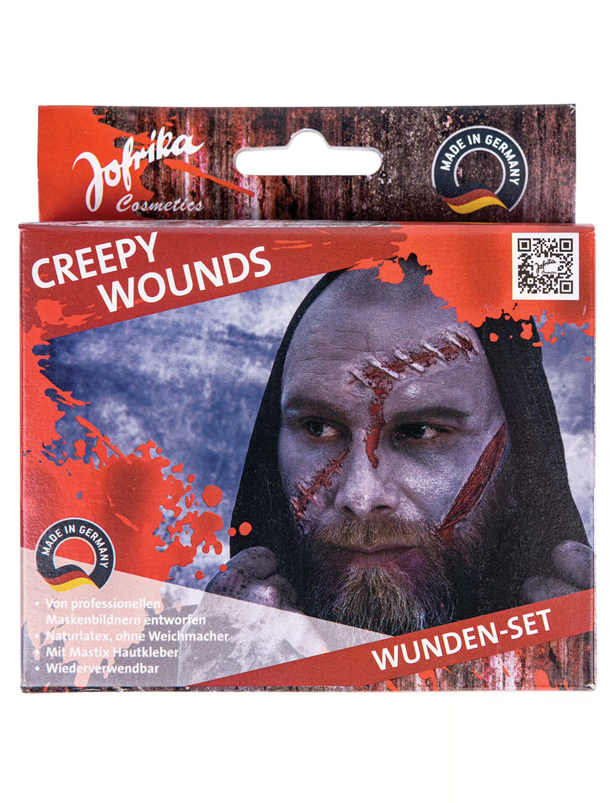 Unser Latex Wunden-Set bietet alles, was du für ein realistisch-gruseliges Halloween-Make-up brauchst. Das Set besteht aus drei verschiedenen Latexwunden, die sich perfekt kombinieren lassen. Alle Wunden werden in Deutschland produziert, von professionellen Maskenbildnern entworfen und bestehen aus Naturlatex, das frei von Weichmachern ist. Im Lieferumfang enthalten ist außerdem Mastix-Hautkleber, mit dem sich die Wunden leicht anbringen lassen. Für eine optimale Anwendung und das beste Ergebnis bitte die Hinweise in der Packungsbeilage beachten!