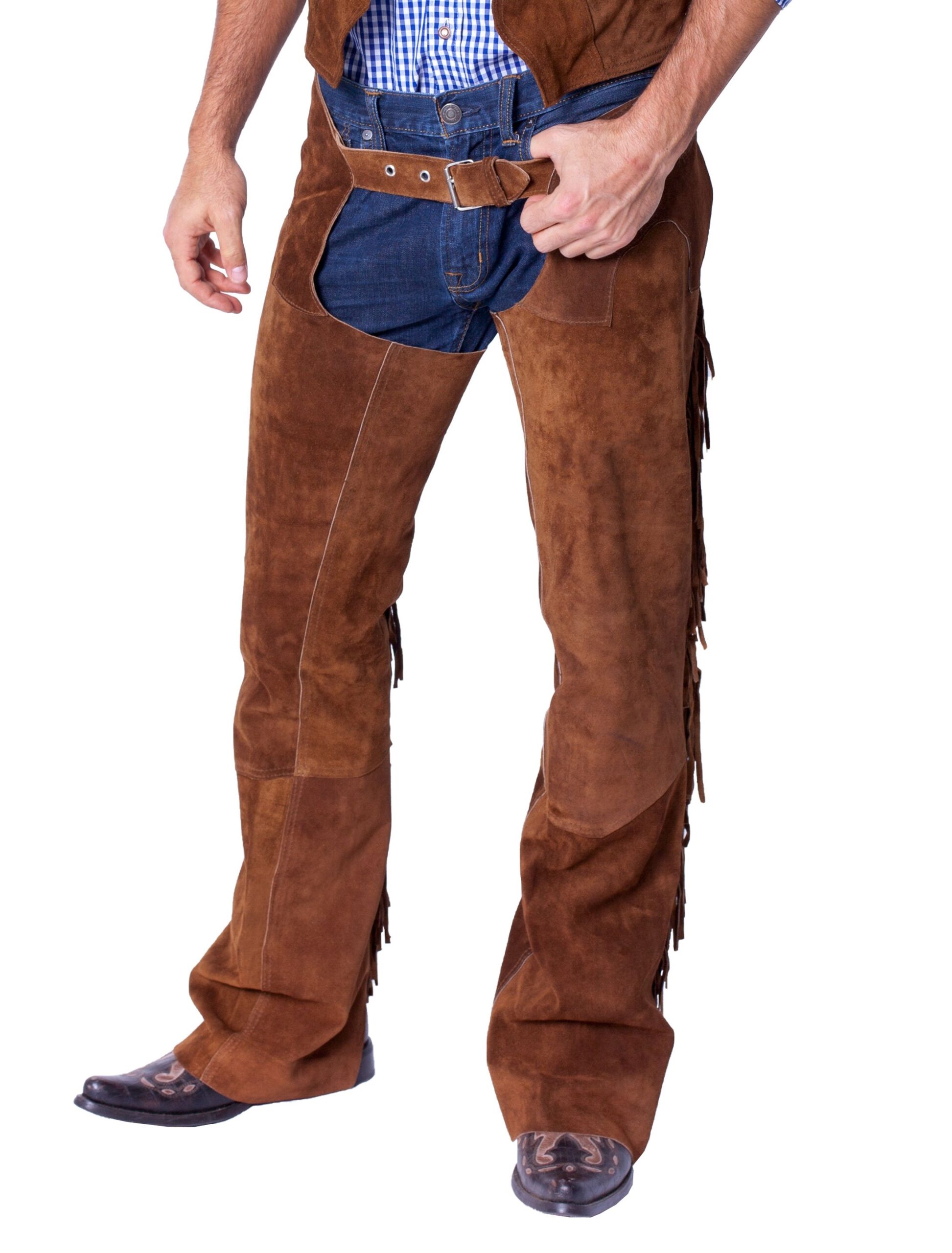 YEE-HAW! Mit diesen Lederchaps könntest Du sofort in jedem Western-Streifen mitspielen! Die Chaps sind aus echtem Rindsleder gefertigt und werden einfach über die Hose gezogen. Die für den wilden Westen typischen Fransen sind ein echter Hingucker. Perfekt als Ergänzung für Dein authentische Cowboy Kostüm!