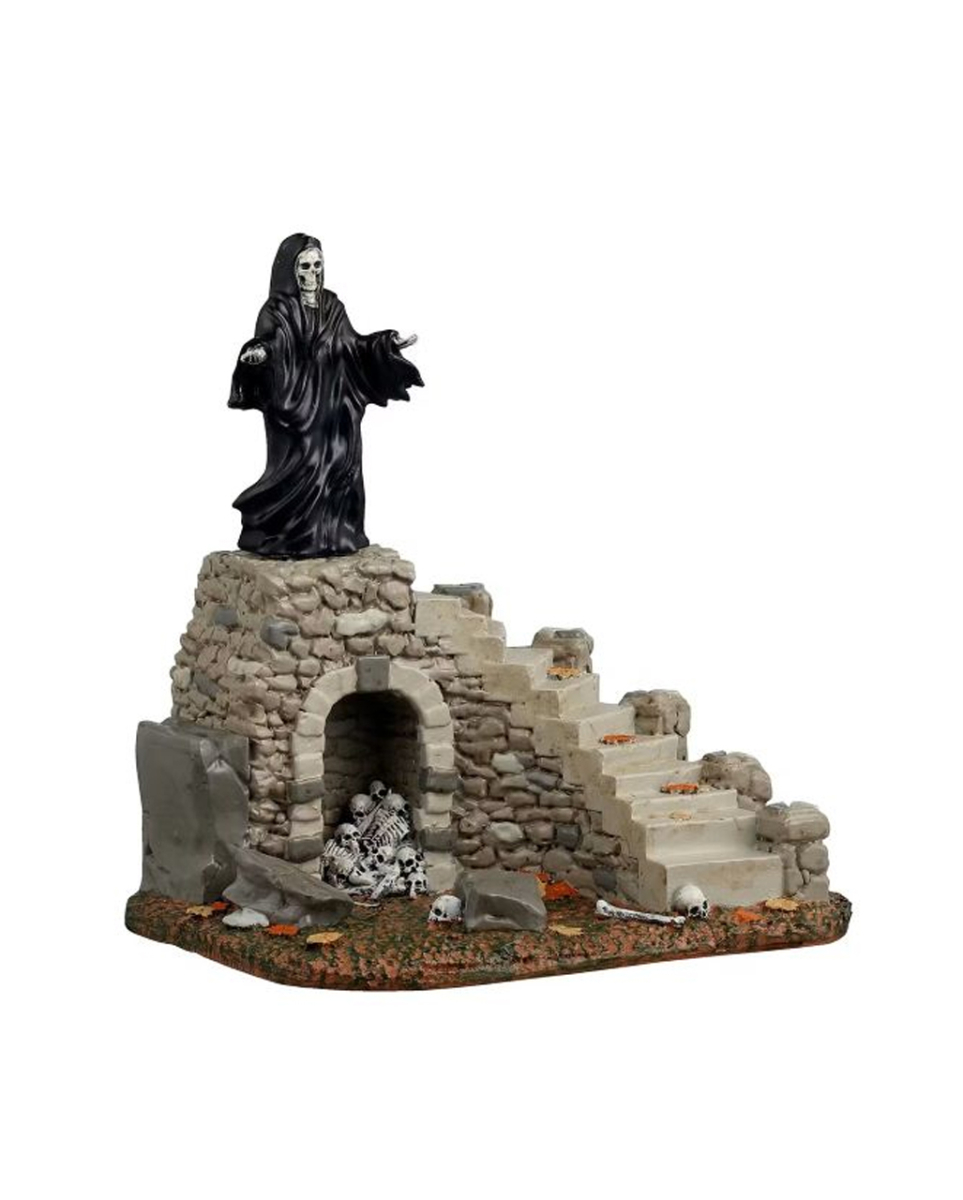Spooky Staircase – Lemax Spooky Town Antike Steintreppe mit Reaper und Skeletten für dein Halloween Miniatur Dorf Stell dir eine Treppe vor, die ins Ungewisse führt, umsäumt von der Dunkelheit und bewacht vom finsteren Sensenmann. Die Spooky Staircase – Lemax Spooky Town verwandelt jede Ecke deines Halloween-Dorfes in einen Ort des Nervenkitzels und der Gänsehaut. Ihre kunstvolle Gestaltung und die ewig ruhenden Skelette ringsum laden dazu ein, das Geheimnisvolle zu erkunden. Die Spooky Staircase – Lemax Spooky Town misst ca. 12,50 x 10,4 x 7 cm und ist aus hochwertigem Polyresin gefertigt. Dieses Material ist bekannt für seine Fähigkeit, feine Details zu bewahren und gleichzeitig extrem langlebig zu sein. Jedes Exemplar ist sorgfältig von Hand bemalt, was jedes Stück zu einem einzigartigen Kunstwerk macht. Lieferumfang: 1 x Spooky Staircase – Lemax Spooky Town Farbe: Beige, Grau, Schwarz, Orange, Weiß Größe: ca. 12,50 x 10,4 x 7 cm Material: Polyresin (Kunststein) Steintreppe mit Reaper und Skeletten für dein Halloween Mini Dorf Grave Reaper thront auf zerfallener Treppe über den Skeletten Begehrte Sammelfiguren für Halloween und Lemax Fans Aus Polyresin gegossen und von Hand bemalt