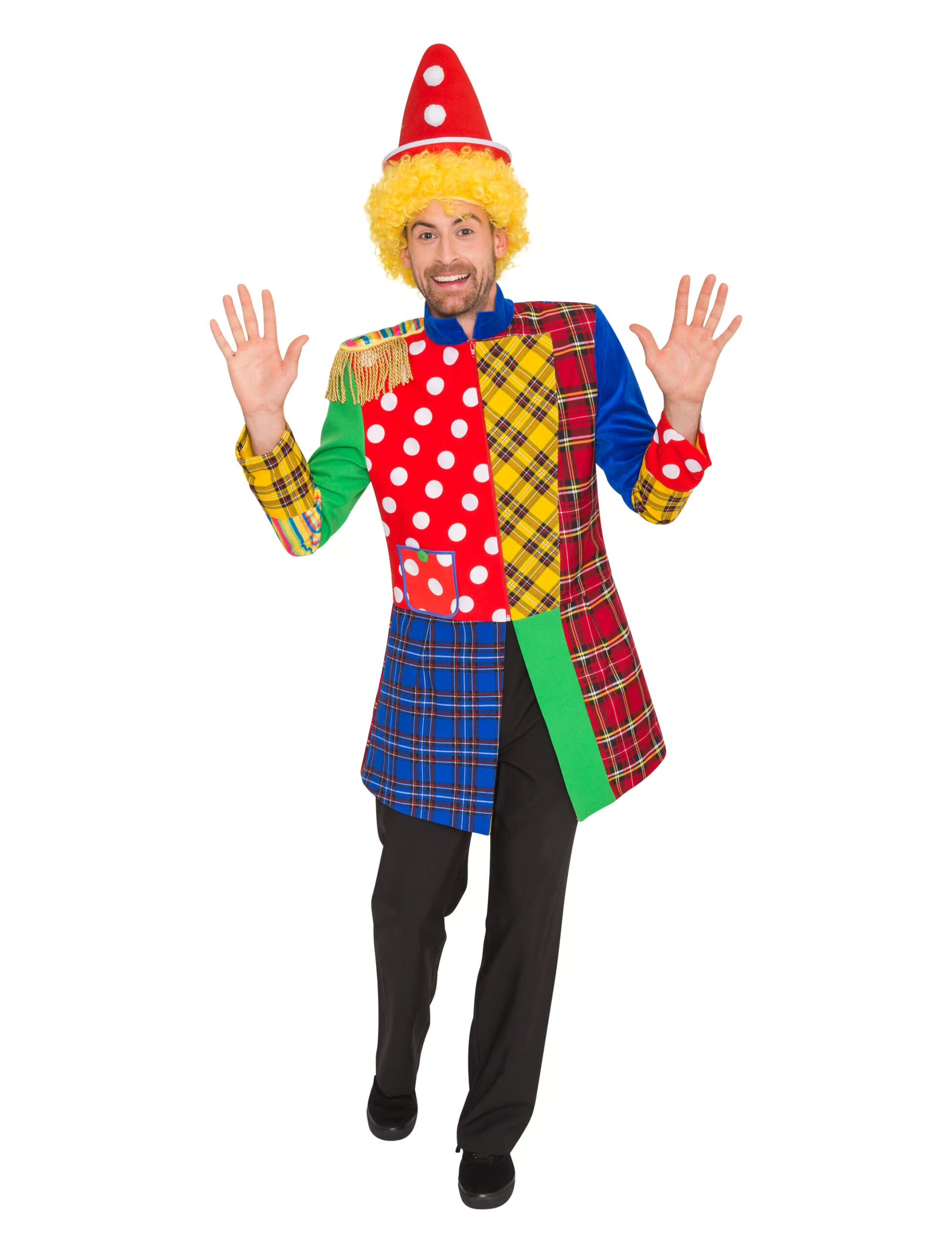 Für fröhliche Gesichter und jede Menge Heiterkeit sorgst Du mit unserem Clown Mantel für Herren an Karneval. Das bunte Kostüm für den Zirkus kann in vielen Größen bei uns bestellt werden und lässt sich mit der passenden Perücke gut an Fasching tragen. Auch an Kindergeburtstagen kannst Du den Mantel anziehen und die Kleinen damit zum Lachen bringen. Verschiedene Muster machen den Coat für Clowns zu einem echten Hingucker und einem tollen Basic für das närrische Fest. Die passende Kopfbedeckung und Schminke kannst Du bei uns im Deiters Shop gleich mitbestellen. Exklusiv Artikel. Patchwork.