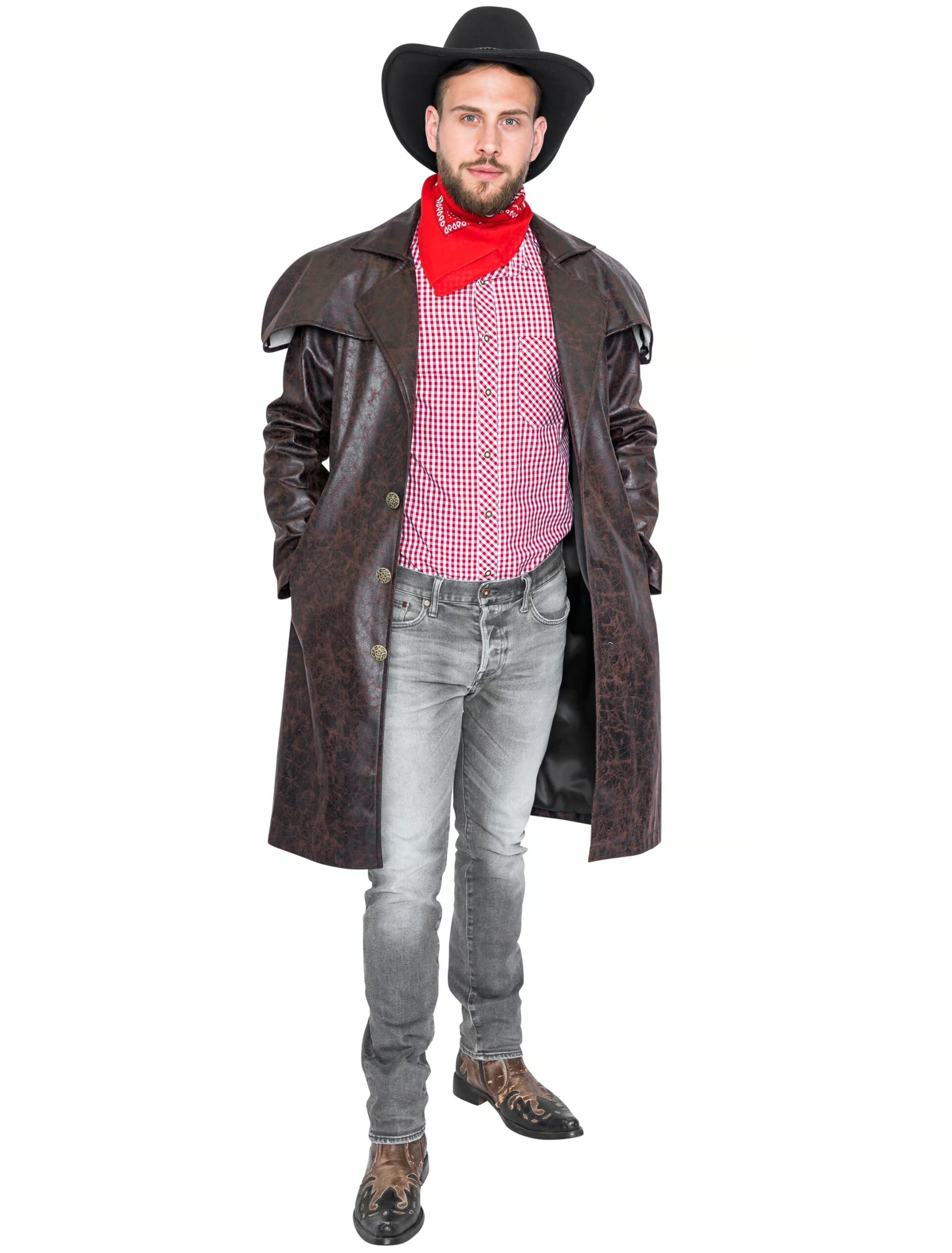 Einmal im Jahr ein waschechter Revolverheld sein? Den Kolben schwingen und wild und verwegen den Cowboyhut tief ins Gesicht ziehen? Das hat Stil! Das hat Klasse! Aber nur mit dem passenden Cowboy-Mantel in klassischer dunkelbrauner Lederoptik. Der Cowboy Mantel verfügt über zwei große Taschen and der Seite und ist hinten weit ausgestellt. Besonders auffällig, maskulin und heldenhaft wirkt der breite Schulterkragen, der dem Mantel noch einen Hauch mehr an Abenteuerlust verleiht. Wer lieber die Weltmeere unsicher macht, findet in diesem robusten, dunkelbraunen Mantel auch eine gute Alternative für kühlere Karnevalstage.