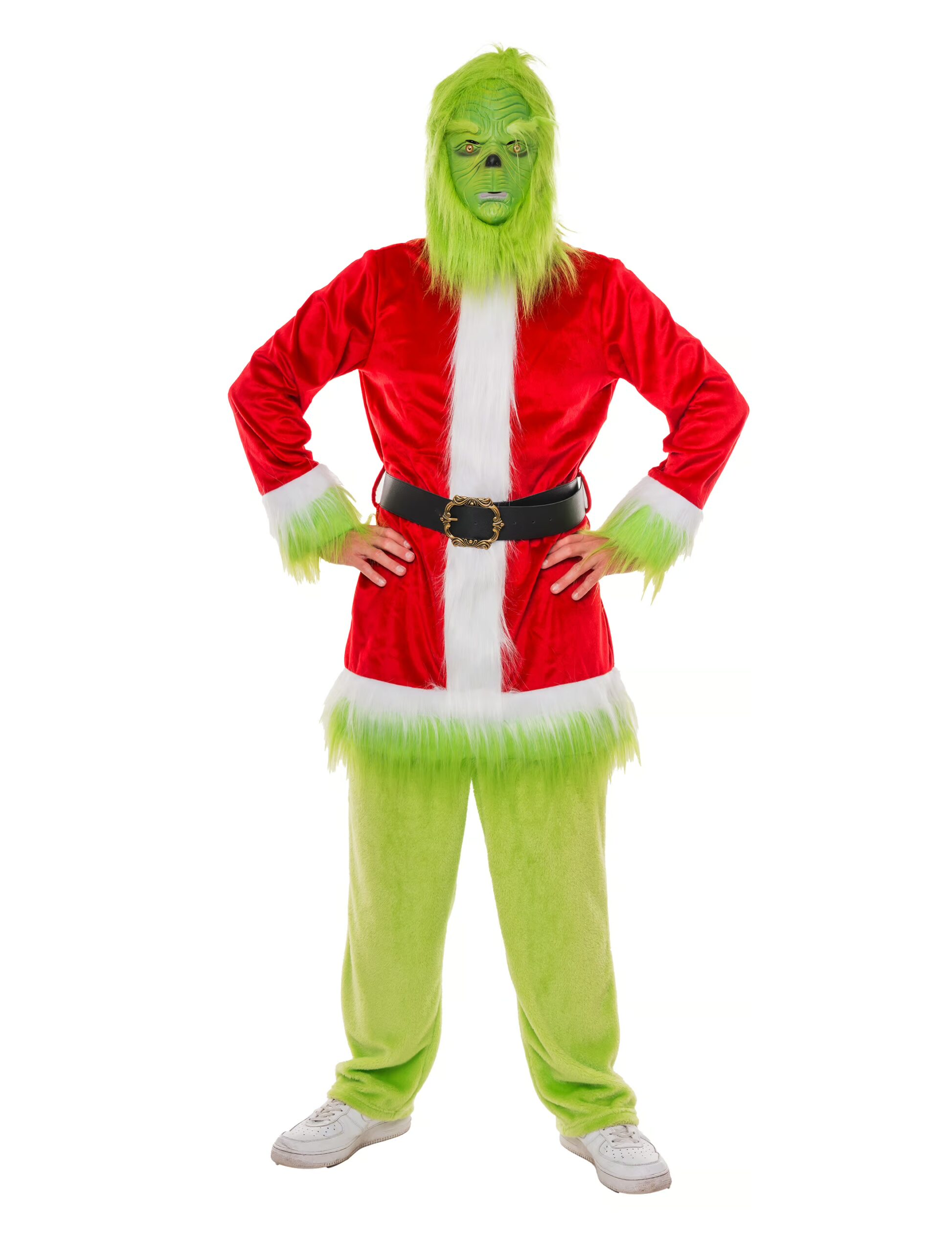 Unser zweiteiliger Mantel bringt ordentlich Wirbel in die festliche Idylle! Das Set besteht aus einem roten Mantel im klassischen Weihnachtsmann-Stil und einem passenden Gürtel – doch mit einem besonderen Twist: Aus Kragen, Saum und Ärmeln lugt auffälliges grünes Fell hervor, das sofort klar macht – hier kommt jemand, der Weihnachten auf seine ganz eigene Weise feiert. Der Mantel lässt sich bequem im Nacken durch einen Knopf schließen und sorgt für einen unvergesslichen Auftritt bei jeder Weihnachtsfeier, Kostümparty oder Karnevalssause. Frech, festlich und absolut einzigartig!