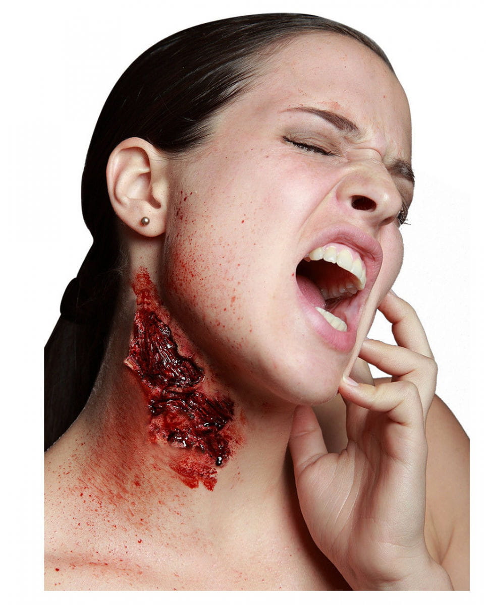 LARP Latexwunde Bisswunde Künstliche Latexwunde für Halloween und Cosplay Wenn du den Überfall eines besessenen Mörders simulieren willst, dann ist die LARP Latexwunde Bisswunde genau das Richtige für dich! Die realistische Latexwunde ist super für dein Kostüm als Verletzter und ist denkbar einfach anzubringen. Versetze dein Umfeld in Staunen mit der echt wirkenden LARP Latexwunde Bisswunde. Die Fake Wunde ist ca. 10,5 x 5,5cm groß und vorcoloriert. Bringe die realistisch aussehende Wunde aus Latex an eine beliebige Körperstelle an und fixiere sie mit Hautkleber. (Dieser ist nicht inklusive!) Wenn du es noch blutiger möchtest, dann hast du die Möglichkeit die Latexwunde zusätzlich mit Filmblut zu verfeinern. Lieferumfang: 1 x LARP Latexwunde Bisswunde Farbe: Hautfarben/Rot Größe: ca. 10,5 x 5, 5 cm Material: Latex fertig coloriert Hautkleber und Filmblut nicht inkl. Perfekt für Cosplay und LARP