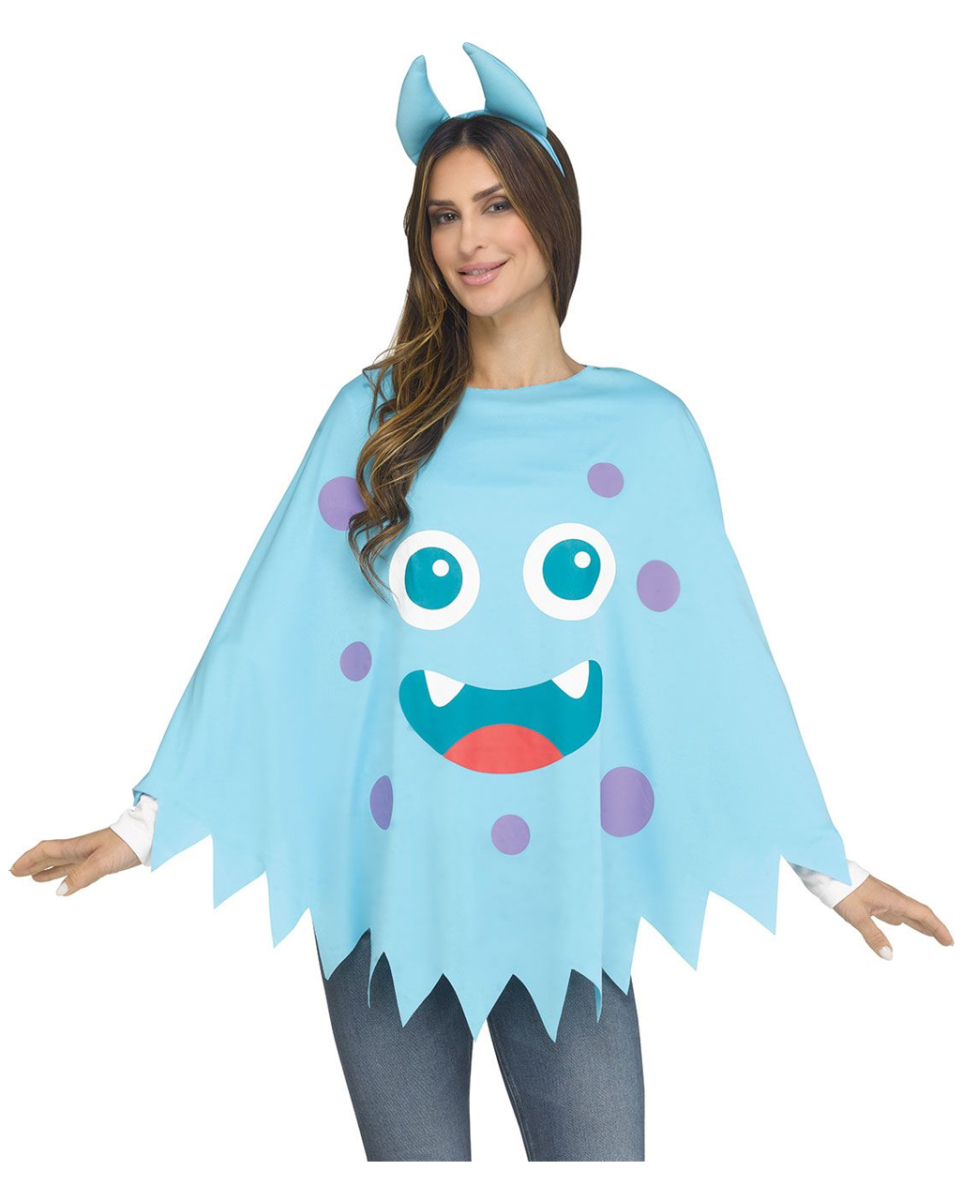 Monster Poncho in Blau als Halloween Kostüm Witziger Halloween Poncho mit Monstergesicht Ob als Karnevalskostüm oder für Halloween: Unser Monster Poncho in Blau ist eine schnelle und vor allem witzige Verkleidung, die dich in ein zuckersüßes Ungeheuer verwandelt. Der blaue Poncho ist aus 100% Polyester gefertigt und in Standardgröße für Erwachsene verfügbar. Der Poncho zeigt ein verrücktes Monstergesicht, und ein Hörner Haarreifen ist ebenfalls im Lieferumfang enthalten. Lieferumfang: 1 x Monster Poncho in Blau als Halloween Kostüm Inhalt: 1x Poncho, 1x Haarreif Farbe: Blau, Lila, Weiß, Rot Größe: One Size Material: 100% Polyester Süßer Poncho mit Haarschmuck Geniales Ungeheuer Kostümaccessoire für Halloween Kostüme Kinderfreundliche Monster Verkleidung Einfaches Kostüm für verkleidungsfaule Erwachsene