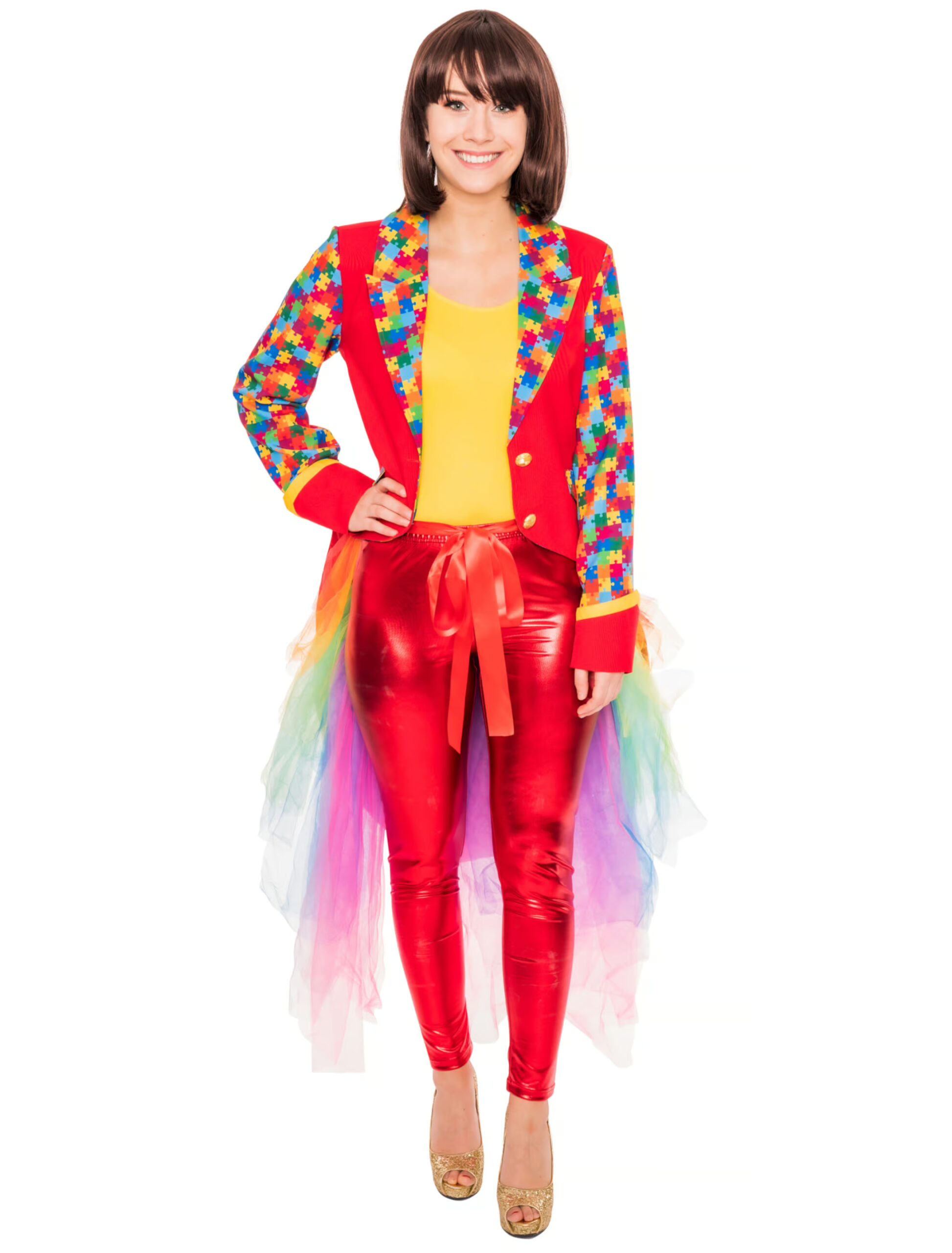 Die Motto Damenjacke der Karnevalssession 2020/2021 erstrahlt in Rot mit knallbunten Farbakzenten. Das Motto “NUR ZESAMME SIN MER FASTELOVEND” spiegelt sich in der Motto Jacke für Damen perfekt wider. Revers und Kragen, Ärmel, Taschenansätze sowie der Riegel auf der Rückseite kommen mit dem knallbuntem Puzzle-Muster. Das Motto-Logo schmückt als großes Patch den Rücken, das zudem das Logo des Kölner Festkomitees zeigt. Die Jacke wird mit zwei goldenen Kunststoff-Knöpfen verschlossen. Jetzt nur noch die rote Nase auf, Mottoschal an und die Karnevalssession kann beginnen! Limitiert – Nur solange der Vorrat reicht!