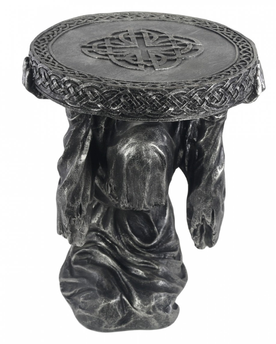 Mystischer Zauberer – Beistelltisch mit Figur und Tribals 35,5cm Grandiose Figur mit Kutte als Halter mit Tischplatte Für die Halloween-Hausbar oder dein Grusel-Buffet ist unser mystischer Zauberer Beistelltisch mit Figur und Tribals ideal. Als dekorative Abstellmöglichkeit bietet der Tisch Platz für Snacks und Kleinigkeiten. Der Tischhalter mit knieender Kuttengestalt ist ca. 35,5 cm hoch und besitzt eine runde Tischplatte mit einem Durchmesser von ca. 28 cm. Das Deko-Objekt ist aus hochwertigem Kunststein gegossen und fachmännisch von Hand bemalt. Lieferumfang: 1 x Mystischer Zauberer – Beistelltisch mit Figur 35,5cm Farbe: Schwarz, Grau Größe: ca. 35 x 28 x 25 cm Gewicht: 3,5 kg Material: Polyresin (Kunststein) Kunststein Beistelltisch mit Kuttengestalt Knieende Figur hält runde Tischplatte Wohnaccessoire für Gothic, Heavy Metal und Halloween Fans Hochwertige Verarbeitung Der Artikel ist ein Geschenkidee. Von Feuer und offenen Flammen fernhalten.