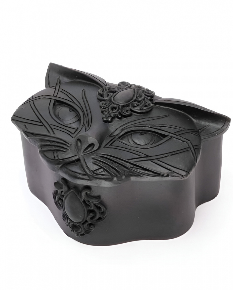 Wicca Schatulle mit heiliger schwarzer Katze 10,5 cm Außergewöhnliches Gothic Schmuckkästchen mit geheimnisvollem Katzenkopf als Prägung Hol dir die Wicca Schatulle mit heiliger schwarzer Katze, um deine größten Schätze, Schmuck oder geheime Botschaften aufzubewahren. Unsere mystische Gothic Schatulle hat einen Katzenkopf als Prägung und darf in keinem okkulten Zuhause fehlen. Die Wicca Schatulle mit heiliger schwarzer Katze ist aus hochwertigem Polyresin und handbemalt. Mit der Größe von ca. 10,5 x 7 x 6 cm ist die mystische Schmuckschatulle ein wunderbarer Ziergegenstand für deine Gruft und eine geniale Geschenkidee. Lieferumfang: 1 x Wicca Schatulle mit heiliger schwarzer Katze 10,5cm Farbe: Schwarz Größe: ca. 10,5 x 7 x 6 cm Gewicht: 258 g Material: Polyresin (Kunststein) Geheimnisvolles Schmuckkästchen mit Katzenkopf als Deckel Prima für Schmuck, Tand und Krimskrams Wicca und Pagan Wohnaccessoire für dein okkultes Zuhause Aus hochwertigem Polyresin gefertigt Von Hand bemalt Der Artikel ist ein Wohnaccessoire und kein Spielzeug. Nicht für Kinder unter 3 Jahren geeignet. Kann Kleinteile enthalten, die verschluckt werden können – Erstickungsgefahr. Von Feuer und offenen Flammen fernhalten.