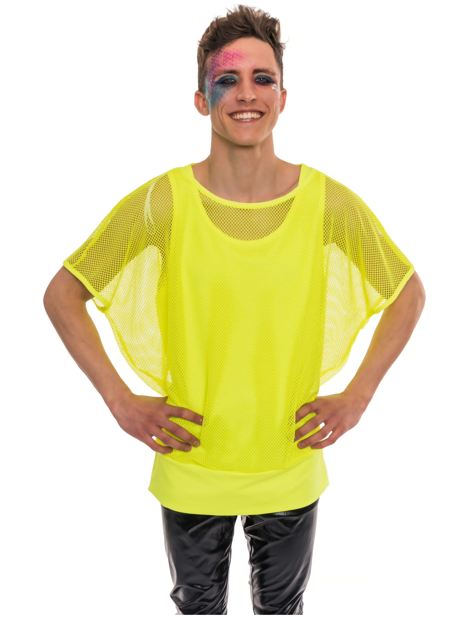 Netz-T-Shirt neongelb 2XL/3XL, ideal für Karneval & Fasching