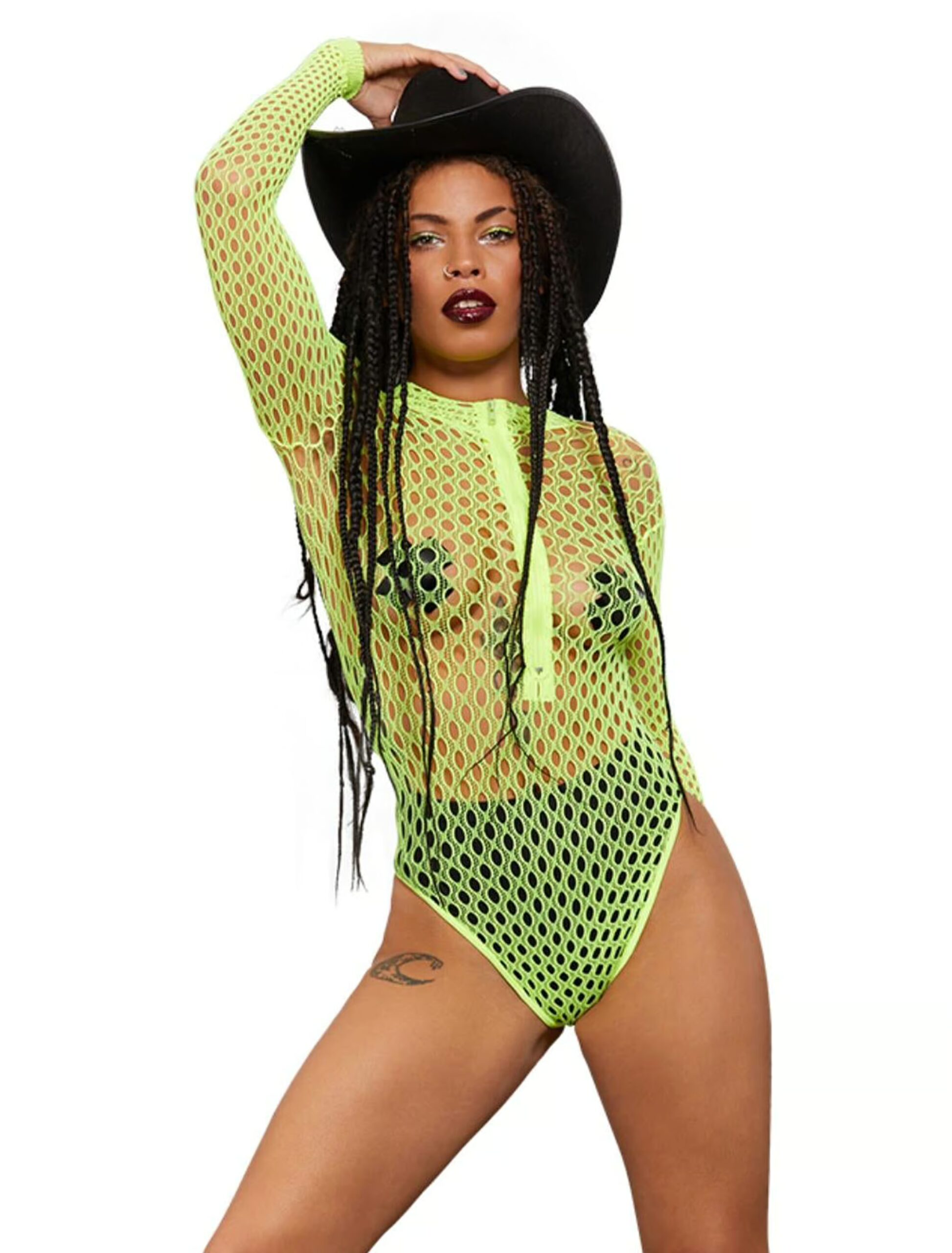 Mit unserem langärmeligen Netzbody mit Reißverschluss wirst du zur ultimativen Erscheinung auf jeder Kostümparty: Ob als rockige Diva, coole Cyberqueen oder geheimnisvolle Nachtschwärmerin. Dank des praktischen Reißverschlusses vorne wird das An- und Ausziehen zum Kinderspiel. Der enganliegende Schnitt sorgt für eine perfekte Passform, während das Netzmaterial für den extra Hauch Extravaganz sorgt!