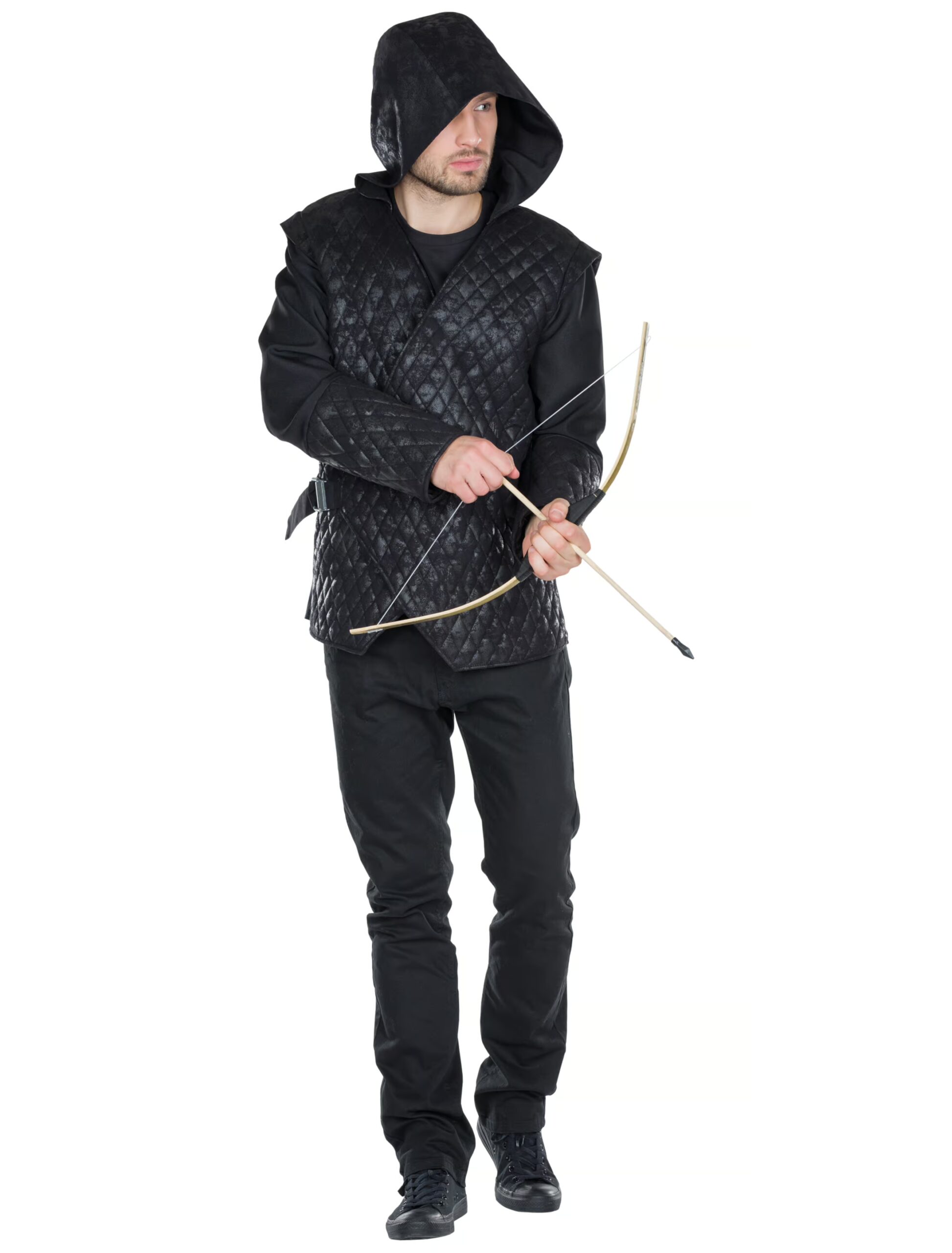 Mit diesem schwarzen Robin Oberteil für Herren sorgst Du als furchtloser Robin Hood, Räuber, Bogenschütze oder auch Waldläufer garantiert für Aufsehen. Es ist ein super Basic für viele mittelalterliche Karnevalsverkleidungen, die Du Dir mit entsprechenden Teilen aus unserem Shop selbst zusammenstellen kannst. Das aparte Oberteil besteht aus einem originellen Kapuzenpullover mit gesteppten Einsätzen, der mit einer Schnalle seitlich geschlossen wird. In dieser Verkleidung bist Du auf jeder Motto-Party und zu Kostümfesten ein willkommener und interessanter Gast, dem die Burgfräulein viel Beachtung schenken.