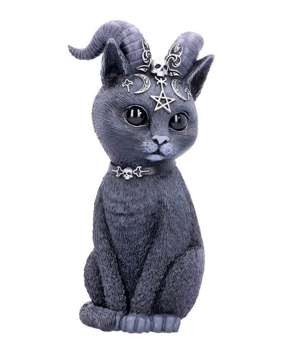 Geheimnisvolle Katzenfigur mit Ziegenhörner als Gothic Deko 26,5cm Große, gehörnte Katze als mystisch anmutendes Wohn-Accessoire Die geheimnisvolle Katzenfigur mit Ziegenhörner zeigt sich von ihrer schönsten und ihrer unheimlichsten Seite. Eine mystische Aura geht von ihr aus. Die Seele von Baphomets scheint in ihr zu wohnen. Diese Ambivalenz ist es, die den Reiz der Figur ausmacht. Unsere geheimnisvolle Katzenfigur mit Ziegenhörner ist natürlich auch ein geniales Geschenk für Fans von extravaganter Gothic Deko. Dieser niedliche Okkultist ist aus hochwertigem Polyresin gegossen und wurde sorgfältig von Hand bemalt. Lieferumfang: 1 x Geheimnisvolle Katzenfigur mit Ziegenhörner 26,5cm Farbe: Grau, Schwarz, Silber Größe: ca. 26,5 cm Gewicht: 1,1 kg Material: Polyresin (Kunststein) Furchterregend, liebenswert, geflügelte Katzenfigur Mystische und Okkulte Zeichen als Verzierung Kommt in einer schönen Geschenkbox Aus hochwertigem Polyresin gefertigt Von Hand bemalt Nicht für Kinder unter 3 Jahren geeignet. Kann Kleinteile enthalten, die verschluckt werden können – Erstickungsgefahr.
