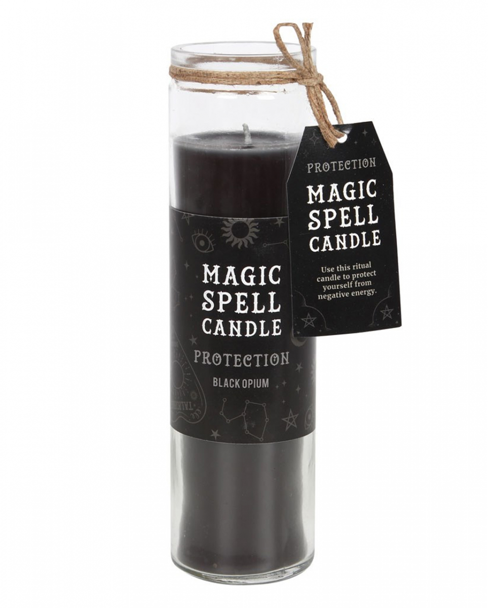 Gothic Altarkerze ",Schutz", mit Opium Duft im Glaszylinder 21cm Magische Gothic Kerze für okkulte Rituale und mystische Bräuche Bist du auf der Suche nach einer geheimnisvollen Deko, die nicht nur deine Räume mit einer düsteren Atmosphäre erfüllt, sondern auch Schutz und Sicherheit verleiht? Die Opium ",Schutz", Altarkerze im Glaszylinder ist ein Symbol für Mystik und Magie. Die Opium ",Schutz", Altarkerze ist ca. 21 cm hoch und aus Paraffinwachs, eingefasst in einem eleganten Glaszylinder. Ihr betörender Duft nach Opium verbreitet eine geheimnisvolle Aura, während sie mit der Brenndauer von ca. 70 Stunden lange Freude bringt. Lieferumfang: 1 x Opium ",Schutz", Altarkerze im Glaszylinder 21cm Farbe: Schwarz, Transparent Größe: ca. 21 x 6 x 6 cm Material: Paraffinwachs, Glas Duft: Opium Brenndauer: ca. 70 Stunden Alternative Gothic Kerze für okkulte Rituale Grabkerze für Zauberer und Hexen Geschenkidee für Halloween, Gothics und Wiccas Erwünschter Zauber: Schutz
