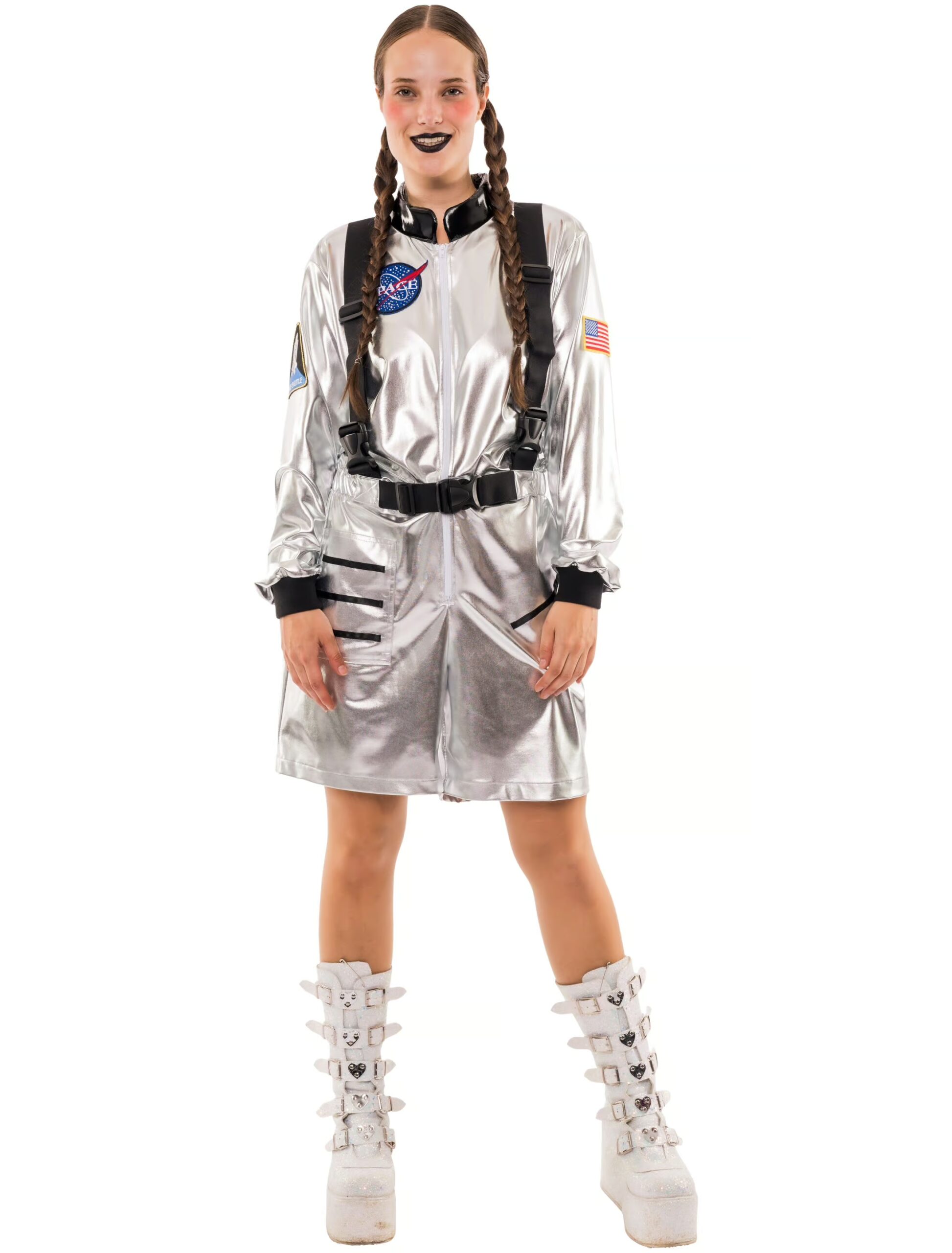 Overall Astronaut Damen silber 34, ideal für Karneval & Fasching