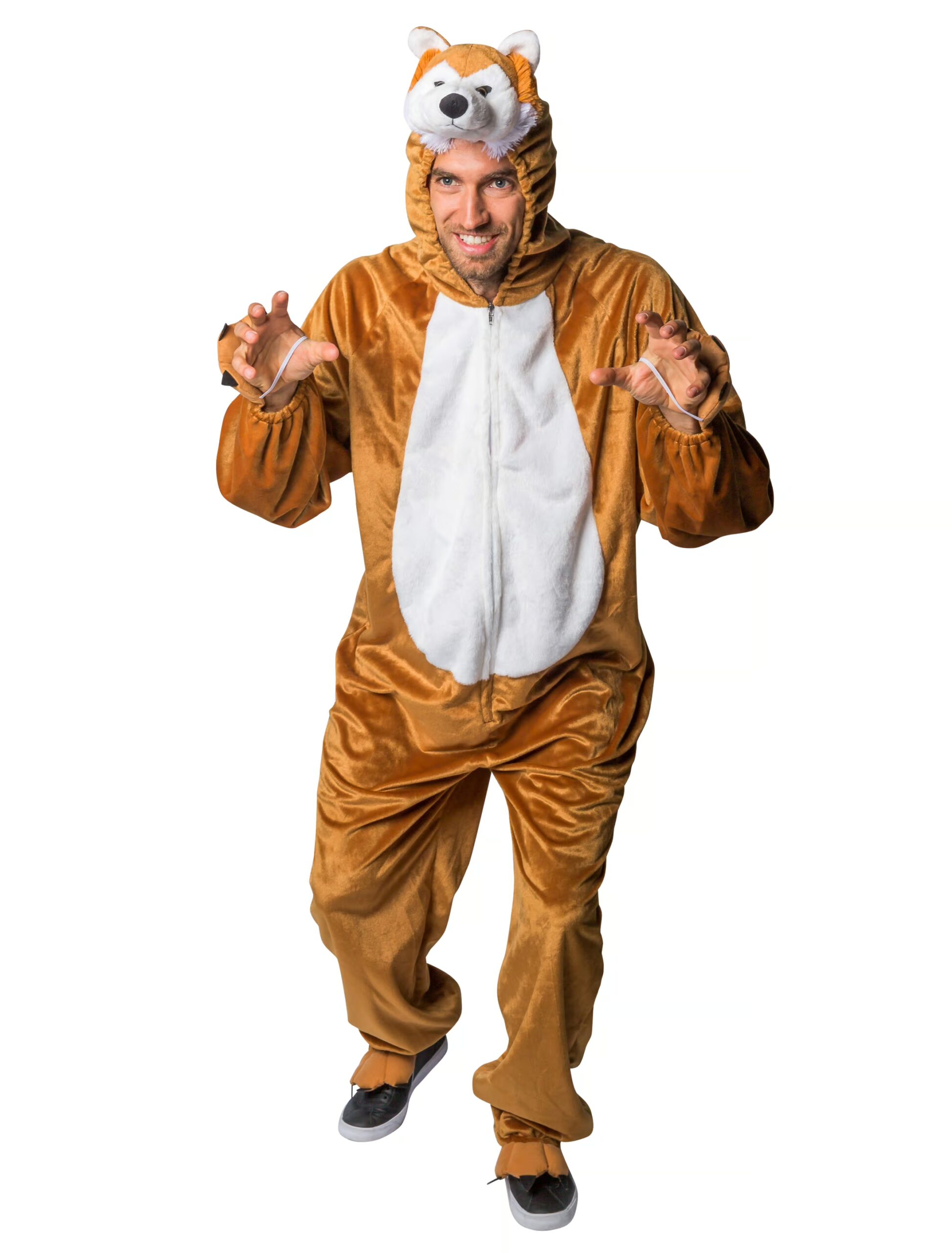 Dieses Ganzkörperkostüm ist ein Muss für alle großen Füchse. Der Plüsch Overall Fuchs für Herren ist hellbraun, nur im Brust- und Bauchbereich weiß. Besonders ins Auge sticht der Fuchskopf, der besonders durch seine süßen Öhrchen und die glänzenden braunen Augen auffällt. Mit diesem Kostüm ist man auf alle Fälle ein echter Hingucker! Das Overall hält besonders an den kalten Tagen schön warm!