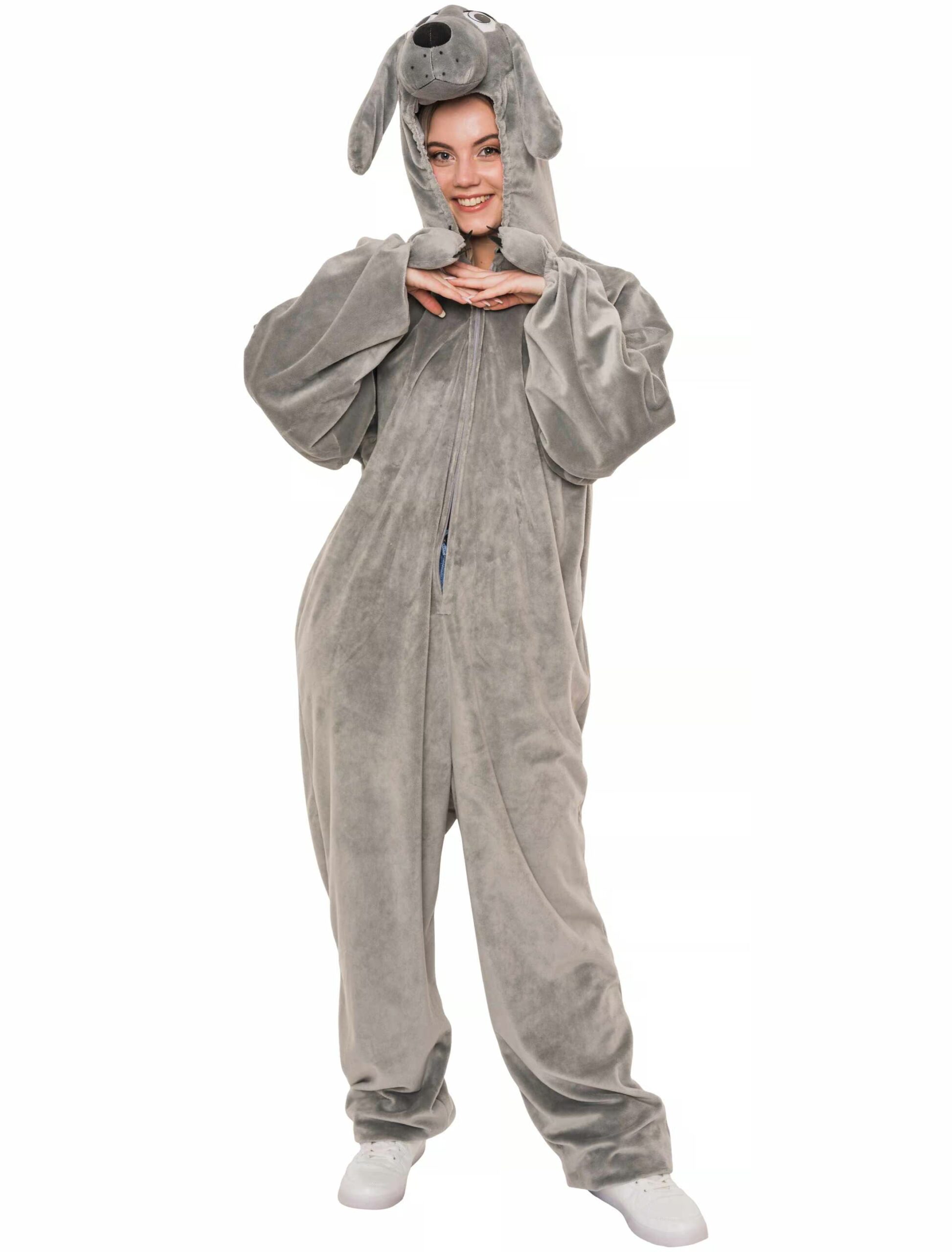 Overall Plüsch Hund Herren grau 56/58, ideal für Karneval & Fasching