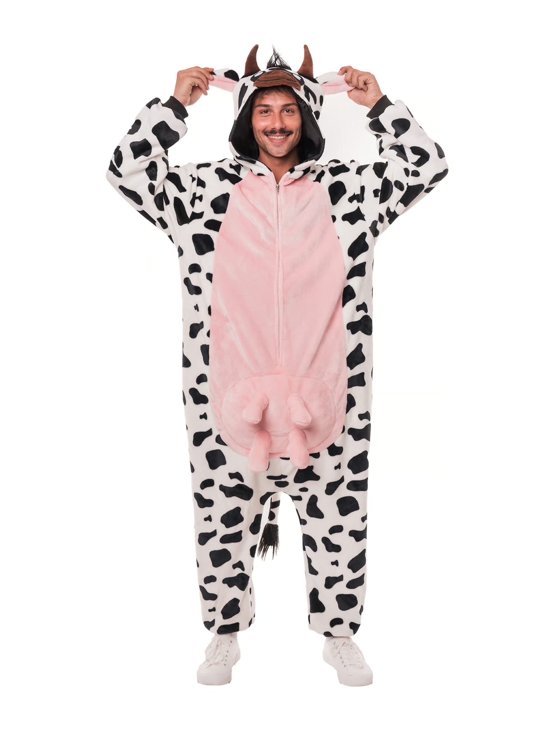 Muh-tig verkleidet! Unser Plüsch Overall Kuh für Herren bringt ländlichen Charme auf jede Karnevalsparty. Mit seinem realistischen Kuhmuster, kleinen Hörnern und süßem Gesicht auf der Kapuze verwandelst du dich im Handumdrehen in eine fröhliche Kuh. Der kuschelige Plüsch sorgt für ein super angenehmes Tragegefühl und der praktische Reißverschluss vorne macht das An- und Ausziehen zum Kinderspiel. Ideal für Karneval, Junggesellenabschiede oder Mottopartys – dieses Kostüm sorgt garantiert für gute Laune auf der Weide!
