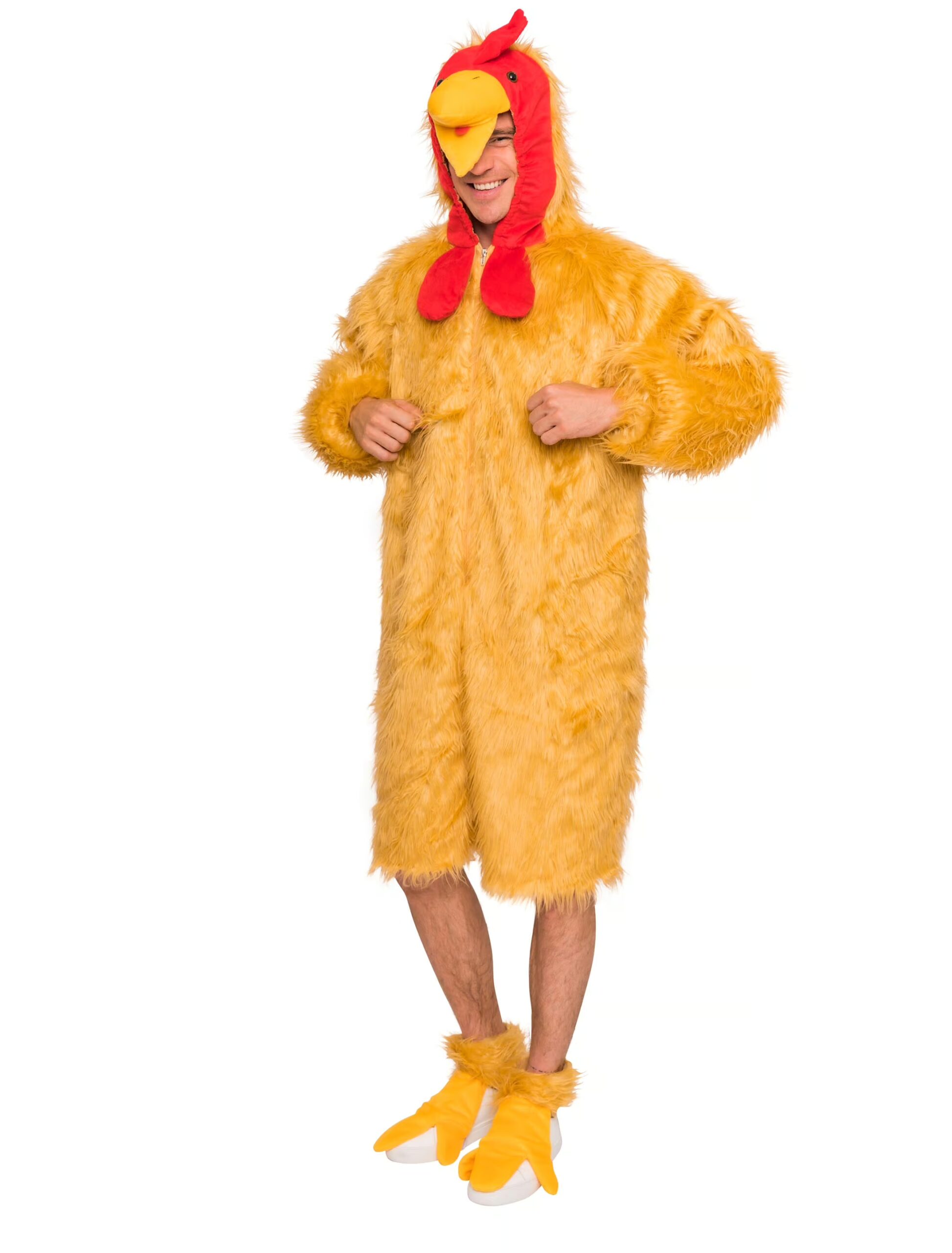 Ob als Hahn im Korb oder Chef einer gackernden Hühnerschar, mit diesem kurzen, braunen Hahnen-Overall bist Du perfekt für jede tierische Motto-Party gestylt. Das Unisex Kostüm aus Plüsch für galante Hähne und verführerische Hennen besteht aus einem kurzen braunen Overall mit Kapuze samt rotem Hahnenkamm und Schnabel sowie einem Paar gelber Schuhüberzieher. Es wird mittels verdecktem Reißverschluss geschlossen. Als charmanter Hahn oder bezaubernde Henne sorgst Du nicht nur beim närrischen Federvieh für Aufsehen, sondern bist auch ein attraktiver Hingucker auf jeder Motto- und Kostümparty, der bei Polonaise und Ententanz seine Verführungskünste unter Beweis stellt.