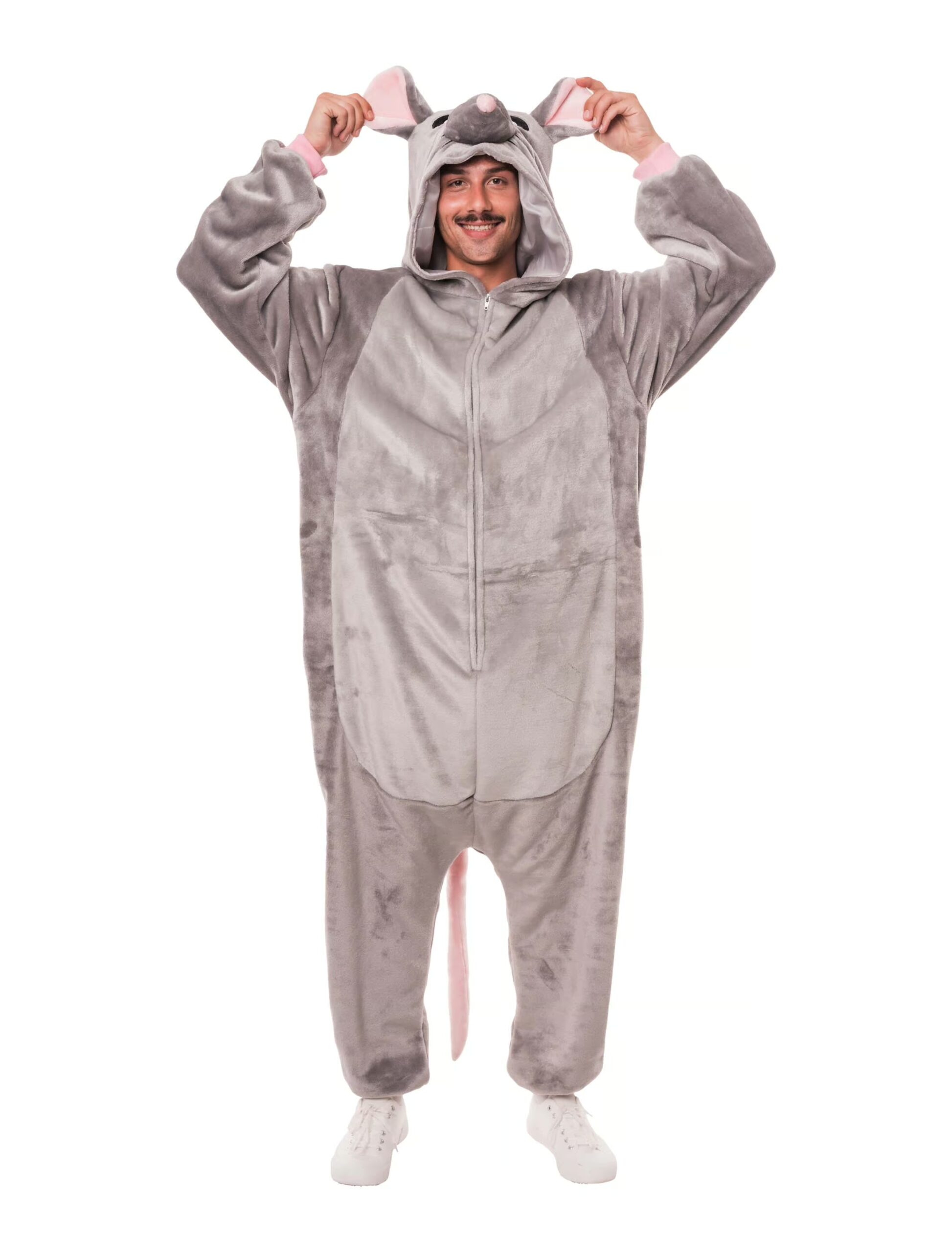 Unser flauschiger Maus Overall für Herren sorgt für niedlichen Auftritt und maximalen Komfort! Die Kapuze bildet den süßen Mäusekopf mit runden Ohren ab, während der weiche Plüschstoff für ein angenehmes Tragegefühl sorgt. Der Overall lässt sich vorne bequem mit einem Reißverschluss schließen und hält dich schön warm. Perfekt für Karneval, Mottopartys oder einfach zum gemütlichen Chillen auf der Couch!