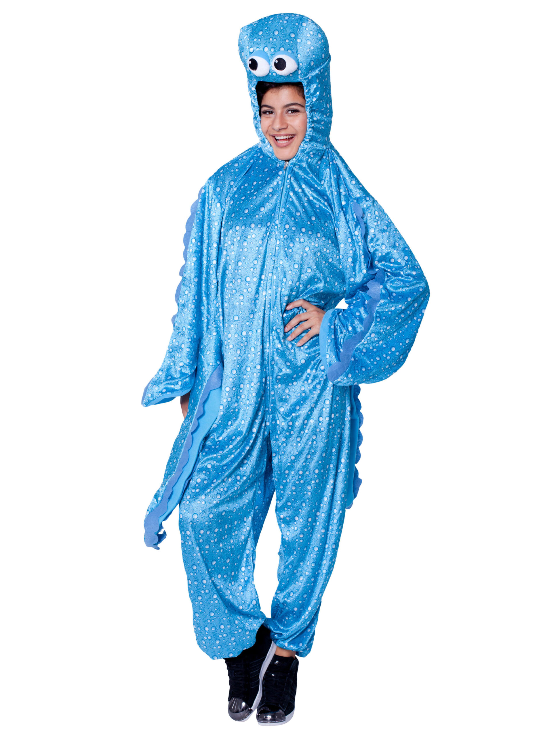 In diesem Tintenfisch Overall aus Plüsch wird Dir garantiert nicht kalt. Dick und flauschig eingepackt kannst Du den Zoch komplett genießen, ohne zur Eissäule zu erstarren. Außerdem ist ein Tintenfisch mal eine originelle Kostümidee, die Du sicher kaum ein zweites Mal in Deinem Umfeld sehen wirst. Es kann ja nicht jeder so ausgefallen rumlaufen wie Du. Und das Beste an diesem Outfit ist, dass es auch für Herren und Kinder verfügbar ist. Eine Tintenfischfamilie gemeinsam auf Tour. Der türkisblaue Overall besteht aus einem fließenden Stoff, der rundum mit weißen Pünktchen, die aussehen wie kleine Wasserblasen, verziert ist. Die beiden Tentakel und die Kapuze mit Tintenfischgesicht und den großen, neugierigen Augen runden dieses Damen Plüsch Kostüm perfekt ab. Mit diesem Meereskostüm bist Du garantiert ein Blickfang auf jeder Party!