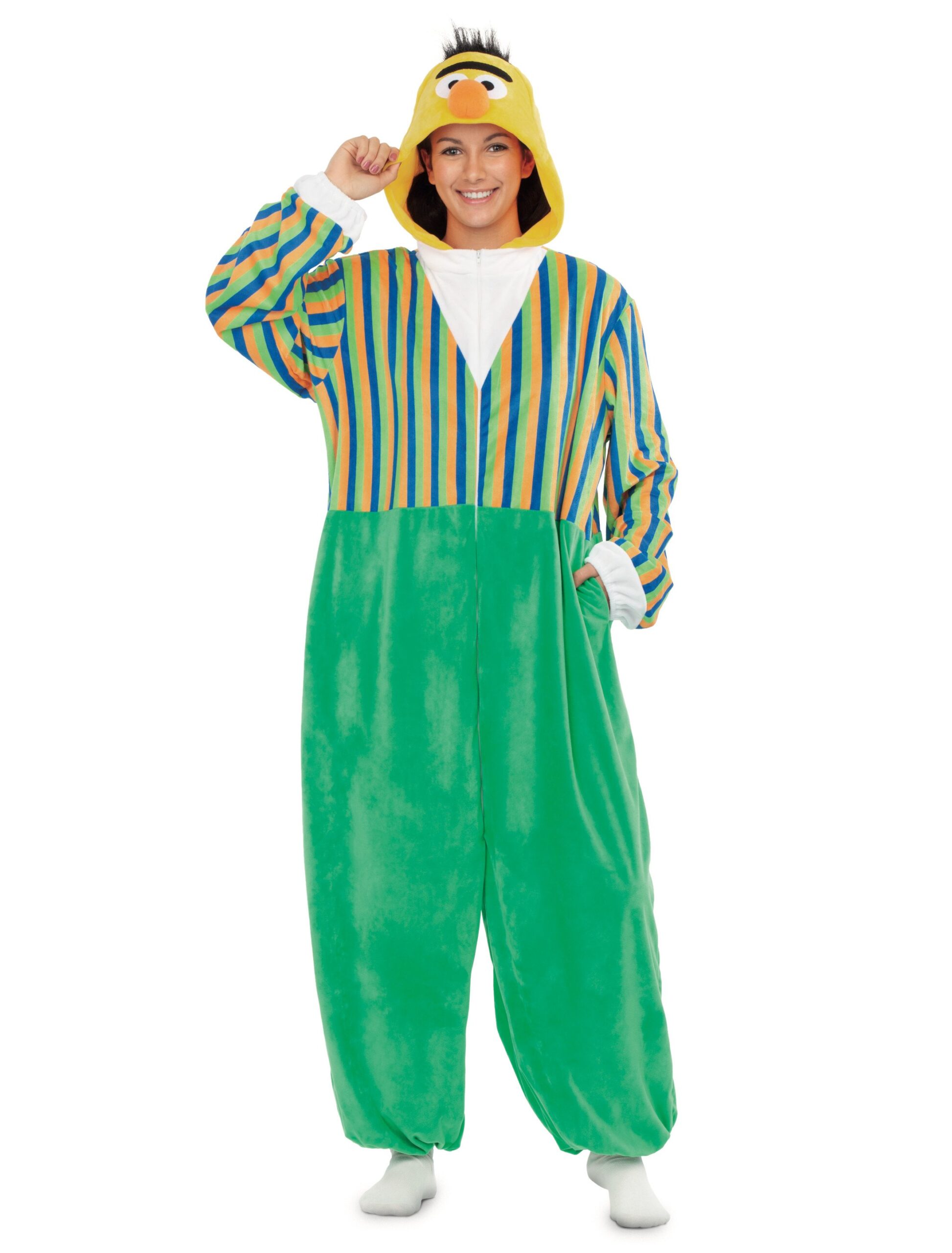 Egal ob Groß oder Klein, egal ob Mottowoche mit Kindheitshelden oder zur Karnevals- oder Faschingszeit – Bert aus der Sesamstraße bleibt ein beliebter Klassiker aus unserer Kindheit. Der stilechte Overall mit langen grünen Hosenbeinen und dem gelb-blau-grün gestreiftem Oberteil ist einfach Jedem im Gedächtnis geblieben und auf der gelben Kapuze erkannt man dann auch das bekannte Gesicht mit den wuscheligen schwarzen Haaren, der großen Augenbraue und der orangenen runden Nase. Das Kostüm kann ganz leicht über einen Reißverschluss an- und ausgezogen werden.