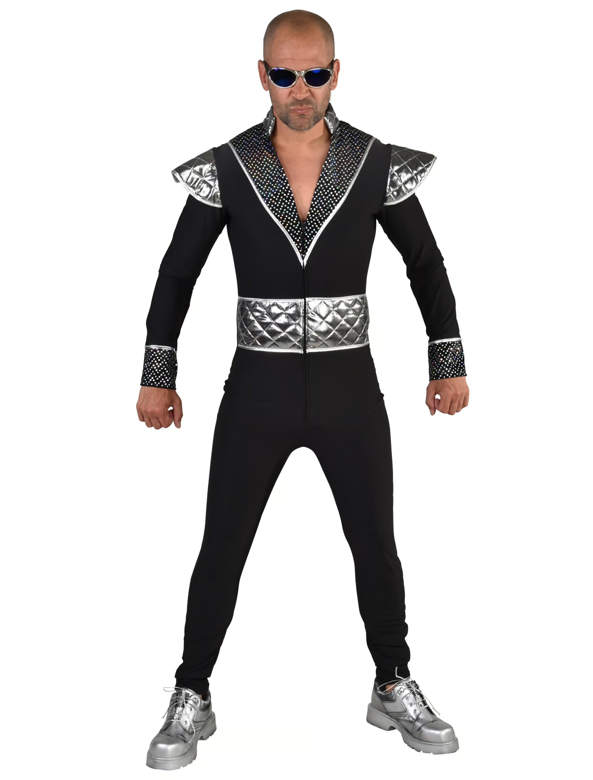 Wer behauptet eigentlich, dass es immer kleine grüne Männchen sein müssen, die von anderen Planeten zu uns kommen? Vielleicht sind die Besucher ja auch richtige Männer in trendig-spacigen Anzügen. Mit diesem abgehobenen Overall in edlem Schwarz bist Du jedenfalls einfach außerirdisch gut gekleidet für die nächste Motto- und Kostüm-Party. Besondere Akzente setzen dabei der Ausschnitt und die zahlreichen Silber-Elemente, die Deine männlich-muskulöse Figur perfekt zur Geltung bringen. Ob Du als Weltraum-Held, als Eroberer aus dem All oder als Liebhaber von der Venus auftrittst: Dieser Dress wird bei den Erden-Frauen auf jeden Fall einen nachhaltigen Eindruck hinterlassen. Exklusiv Artikel.