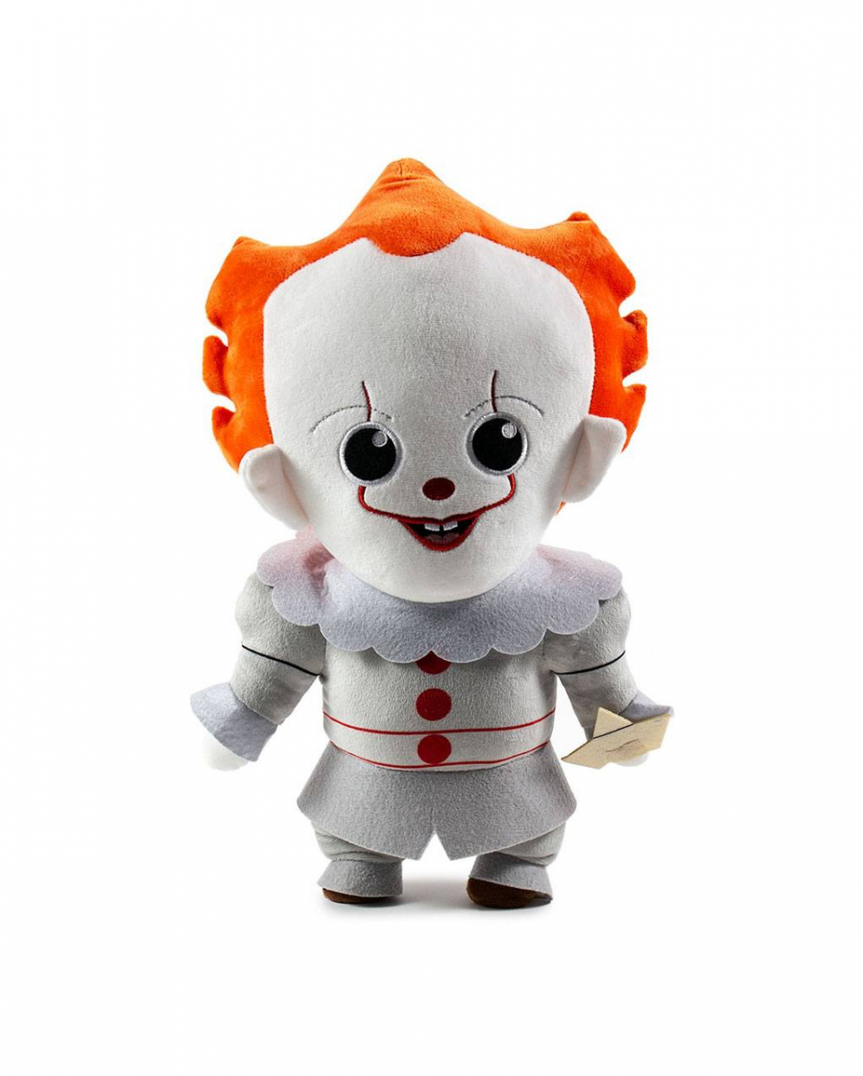 Pennywise – Stephen Kings ES HugMe Plüschfigur 41cm Offizielle Pennywise-Figur als Geschenkartikel für Horrorfilm-Fans Schnapp’ dir mit unserer Pennywise – Stephen Kings ES HugMe Plüschfigur 41cm eine putzige Version des personifizierten Schreckens aus den Verfilmungen der Romane von Stephen King! Der knuddelige Horrorclown ist ein absolutes Must-Have für alle Sammler und eine geniale Geschenkidee für ES-Fans! Die Pennywise – Stephen Kings ES HugMe Plüschfigur weist eine Größe von ca. 41cm auf. Optisch entspricht der ES-Fanartikel bis ins Detail der Vorlage aus den Verfilmungen und Büchern rund um den Horrorclown mit oranger Mähne, weißem Gesicht und charakteristischem Harlekin-Outfit. In der linken Hand hält Pennywise das kleine Papierschiffchen, das jedem IT-Fan ein Begriff sein dürfte. Eine integrierte Vibrationsfunktion sorgt für eine spürbare Umarmung durch den kleinen Tunichtgut, der sich mit Sicherheit sehr darüber freuen würde, mit dir deine Lieblings-Horrorfilme anzuschauen… Lieferumfang: 1 x Pennywise – Stephen Kings ES HugMe Plüschfigur 41cm Farbe: Grau / Weiß / Orange Größe: ca. 41 cm Material: 100% Polyester Mit Vibrationsfunktion für eine kuschlige Umarmung, wenn du sie brauchst Nicht für Kinder unter 3 Jahren geeignet. Kann Kleinteile enthalten, die verschluckt werden können – Erstickungsgefahr. Von Feuer und offenen Flammen fernhalten.
