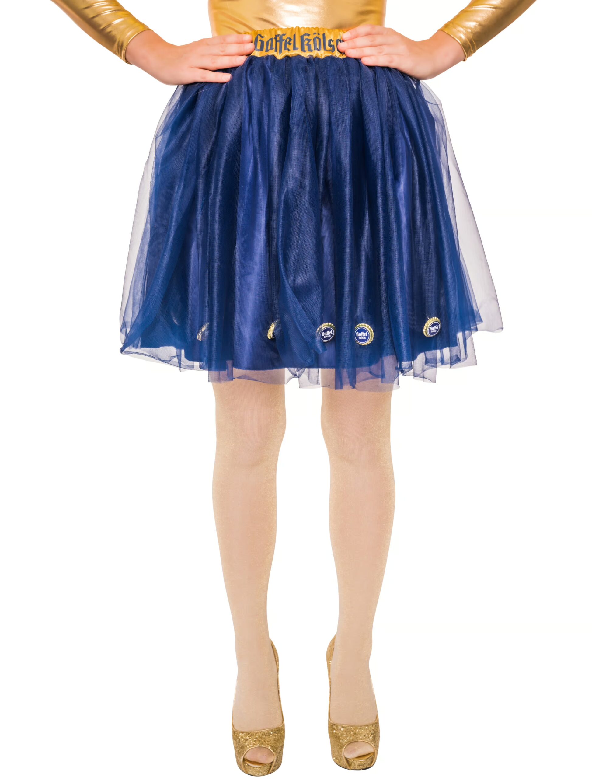 Kombiniere den lizenzierten Gaffel Tüllrock mit verschiedenen Kostümteilen und weiteren Gaffel Accessoires und werde zu einem echten Hingucker auf jeder Mottoparty. Der königsblaue Petticoat ist am Tüllstoff mit Gaffel-Kronkorken verziert, mit einem Gummizug sowie einer Schnürung zum Zubinden versehen und ideal für den Karneval und Fasching geeignet. Offizielles Merchandise – Exklusiv bei uns!