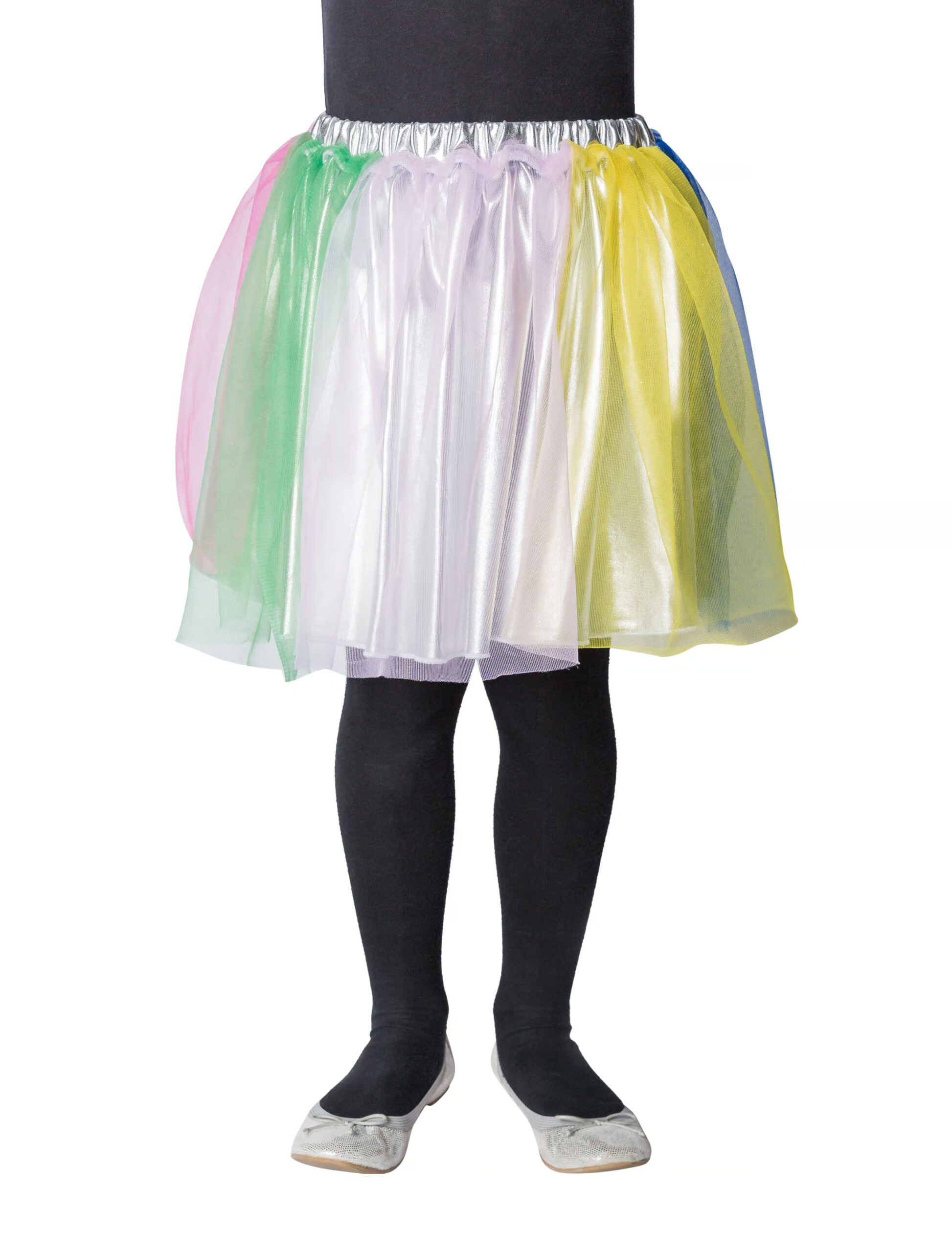 Mit diesem wundervollen Petticoat gibst Du Deinem Kostüm den letzten Schliff! Der Unterrock ist aus silberfarbenen Polyester-Stoff gefertigt und mit buntem Tüll in Regenbogenfarben bestückt. Genau das Richtige für die kleinen Tänzerinnen und Karnevals-Freundinnen unter Euch!