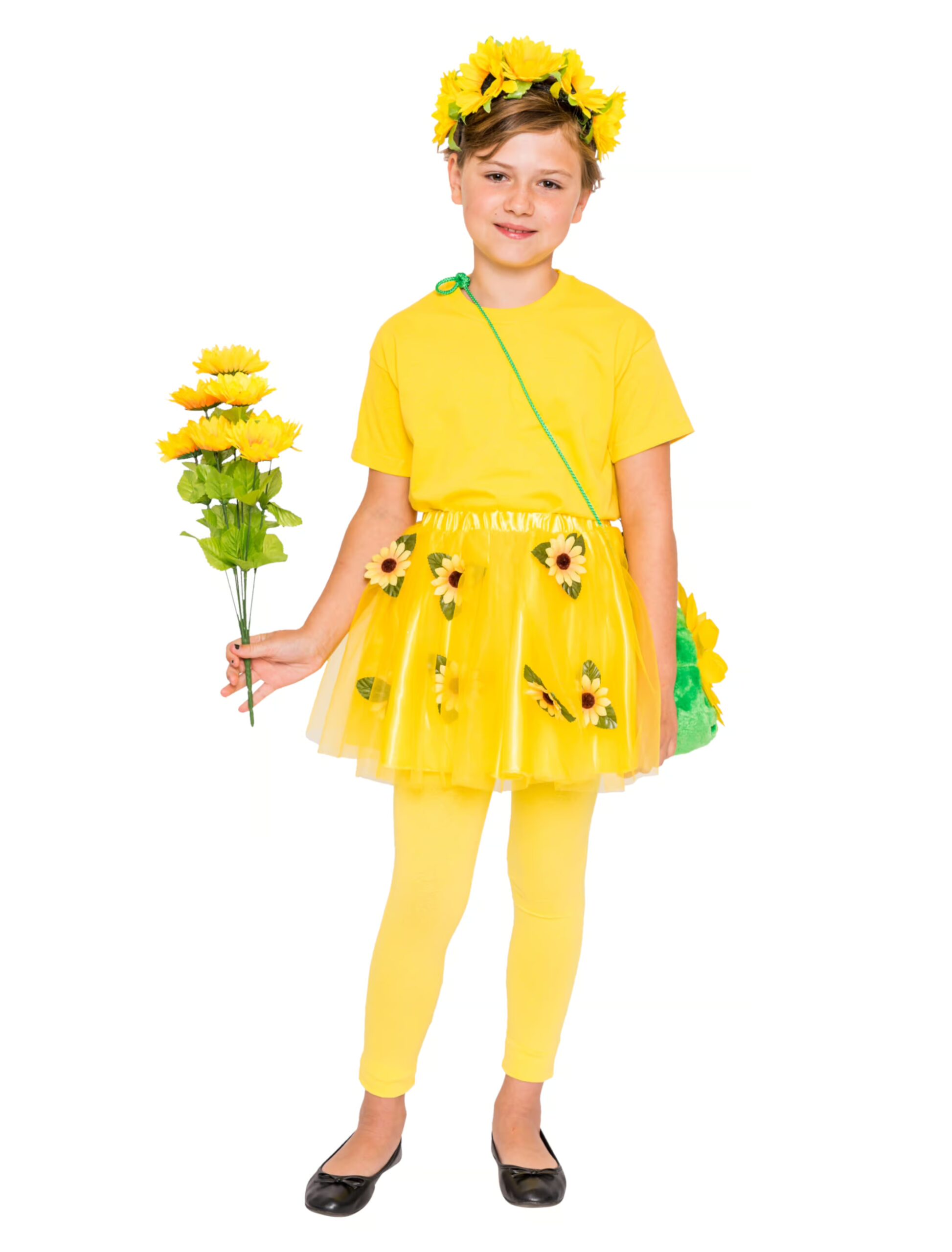 Ganz bezaubernd ist der hübsche, gelbe Petticoat Sonnenblume für Kinder aus 100% Polyester, der ein hervorragendes Kostümteil für kreative Blumen- und FeenKostüme ist. Der 32 cm lange Petticoat mit 3 cm breitem Bund und Tüllüberrock ist wirkungsvoll mit vielen Sonnenblumen samt Blättern geschmückt. Er ist an sich ein schön dekorativer Blickfang. Aber mit einem gelben T-Shirt und einer grünen Strumpfhose aus unserem Shop sowie einem neckischen Blütenkranz aus Sonnenblumen im Haar wird Dein Kind zur lieblichsten Sonnenblume, die Licht und Wärme in die kalte Faschingszeit bringt.