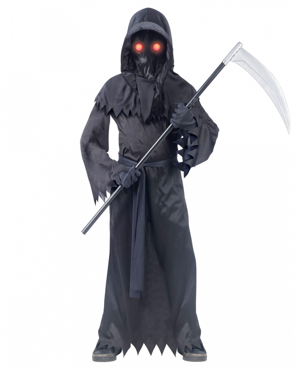 Schwarze Phantom Kinder Halloween Kostüm mit rot leuchtenden Augen Gehe als gruseliges Geisterphantom mit roten Leuchtaugen zum Trick or Treat Mit dem Schwarze Phantom Kinder Halloween Kostüm mit rot leuchtenden Augen sorgst du für Angst und Schrecken. Du willst deinen Nachbarn das Fürchten lehren? Mit dem Geisterphantom Kostüm dürfte das kein Problem sein. Als schwarzer Sensenmann wirst du die meisten Süßigkeiten abstauben. Warum? Weil alle Nachbarn wollen, dass du schnell wieder gehst. Sie können deinen gruseligen Anblick nicht ertragen und werden dir die Tasche voll packen. Hahaha! Mit dem Schwarze Phantom Kinder Halloween Kostüm mit rot leuchtenden Augen wirst du zum Geist aus der Hölle. Das Grusel Kostüm für Kinder besteht aus einer langen Robe und einem passenden Gürtel. Dazu ziehst du die schwarzen Handschuhe an, die nicht nur unheimlich aussenhen, sondern auch die Hände warmhalten. Zu guter Letzt werden die Mütze und die Leuchtaugen angezogen. Lieferumfang: 1 x Schwarze Phantom Kinder Halloween Kostüm mit rot leuchtenden Augen Inhalt: 1x Robe, 1x Mütze, 1x Gürtel, 1 Paar Handschuhe, 1x Leuchtaugen Farbe: Schwarz Größe: S, M, L Material: 100% Polyester Gruseliges Halloween Kostüm für Kinder Toller Leuchteffekt – die Augen verblassen langsam und leuchten wieder auf benötigt 3 AA Batterien, nicht im Lieferumfang enthalten Größe S ca. 4-6 Jahre M ca. 8-10 Jahre L ca. 12-14 Jahre Brustumfang ca. 55-63 cm ca. 69-76 cm ca. 76-81 cm Taillenumfang ca. 48-55 cm ca. 58-63 cm ca. 60-66 cm Körpergröße ca. 97-117 cm ca. 124-137 cm ca. 139-152 cm Achtung: Der Artikel ist ein Kostüm und kein Spielzeug. Nicht für Kinder unter 3 Jahren geeignet. Kann Kleinteile enthalten, die verschluckt werden können – Erstickungsgefahr. Von Feuer und offenen Flammen fernhalten. Nicht für Kinder unter 3 Jahren geeignet. Kann Kleinteile enthalten, die verschluckt werden können – Erstickungsgefahr.