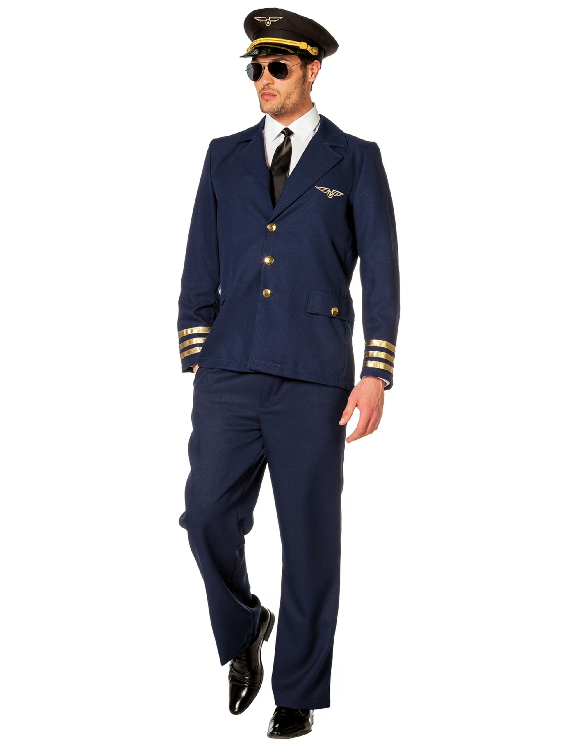 Nächster Halt Köllefornia! Dieser schicke deluxe Pilotenanzug lässt die Augen auf jeder Party groß werden. Teil dieses edlen Sets ist ein dunkelblaues Pilotenjackett und eine elegante farblich passende Hose. Geschickt gesetzte goldene Akzente auf dem Jackett, wie Knöpfe oder Armverzierungen, machen Dein originelles Outfit zum Hingucker auf jeder Party. Dieses Kostüm eignet sich unter anderem für den Karneval draußen oder Kostümpartys. Mit passendem Zubehör wie einem klassischer Pilotenhut, einer schicken Pilotenbrille und einer schwarzen Krawatte kann die wilde Reise beginnen.