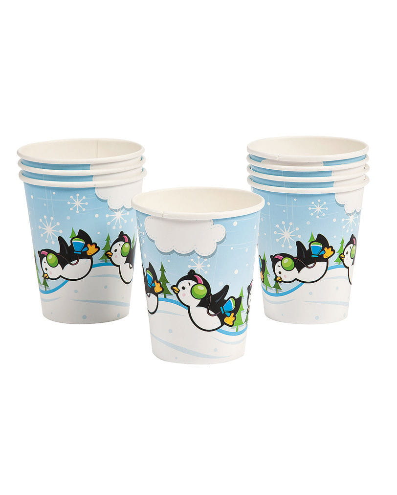 Penguin Motiv Partybecher 8 St. Becherset für ein stimmungsvolles Weihnachtsfest Die Partybecher Penguin Party bieten den idealen Start in den Winter, denn mit dem verspielten Pinguinmotiv sorgen sie nicht nur für Weihnachtsstimmung, sondern auch für ein Lächeln auf den Gesichtern deiner Gäste. Das Becherset Partybecher Penguin Party besteht aus 8 Bechern, die für ca. 250 ml weihnachtlichen Früchtepunsch Platz haben. Auf den Einwegbechern findest du eine verschneite Hügellandschaft, auf der sich vier Pinguine austoben. Lieferumfang: 1x Partybecher Penguin Party Inhalt: 8 St. Farbe: Hellblau, weiß Größe: 9 cm hoch, 7,5 cm Durchmesser Fassungsvermögen: ca. 250 ml ( 9oz ) Kein Eichstrich Material: Pappe Lustiges Partybecherset