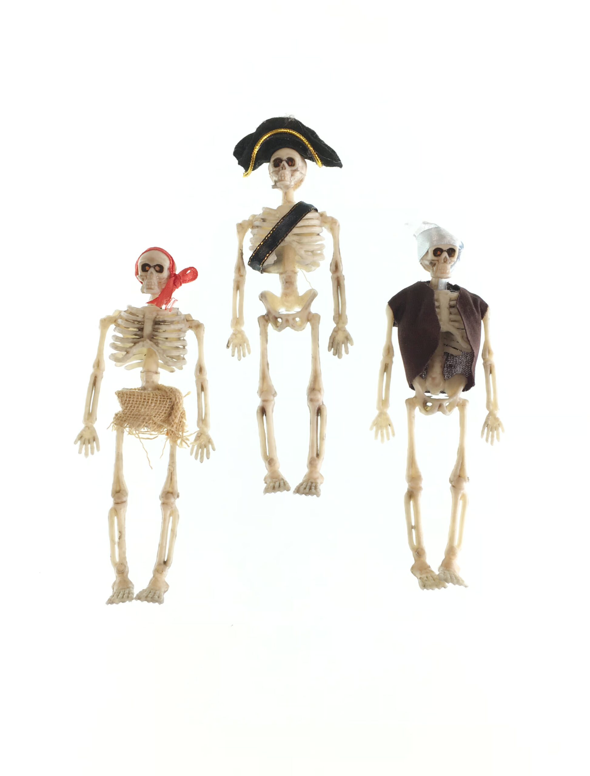 Dir fehlt noch das gewisse Etwas auf Deiner Piraten Mottoparty? Diese 3 Piraten Skelette dürfen hier auf keinen Fall fehlen. Die Skelette haben jeweils eine Größe von ca. 15 cm und sind verschieden gekleidet. Ein echtes Highlight für Deine Party! Du kannst die Skelette aber auch für einen echten Eyecatcher an Deine Kleidung nähen!