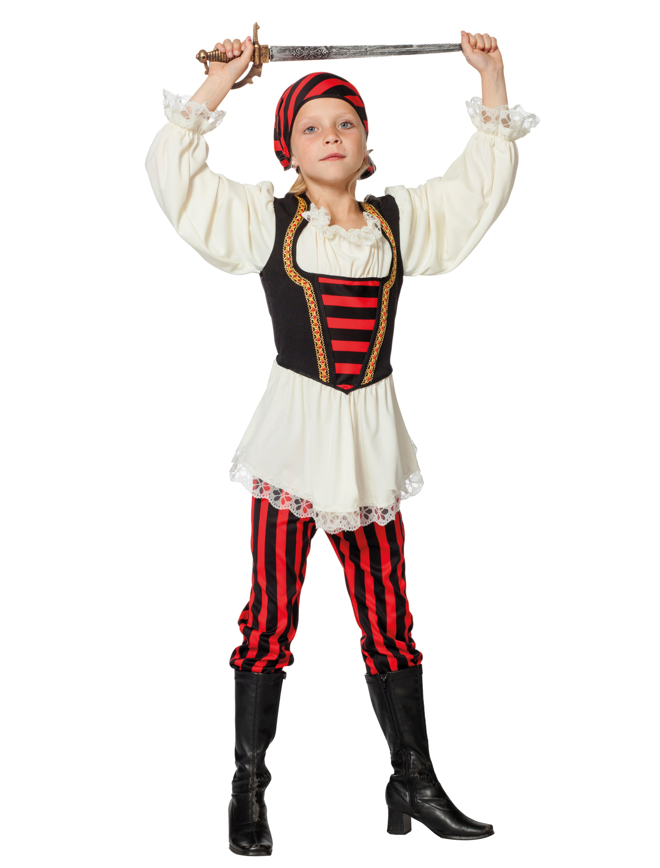 Piratin 3-tlg. schwarz/rot 128, ideal für Karneval & Fasching