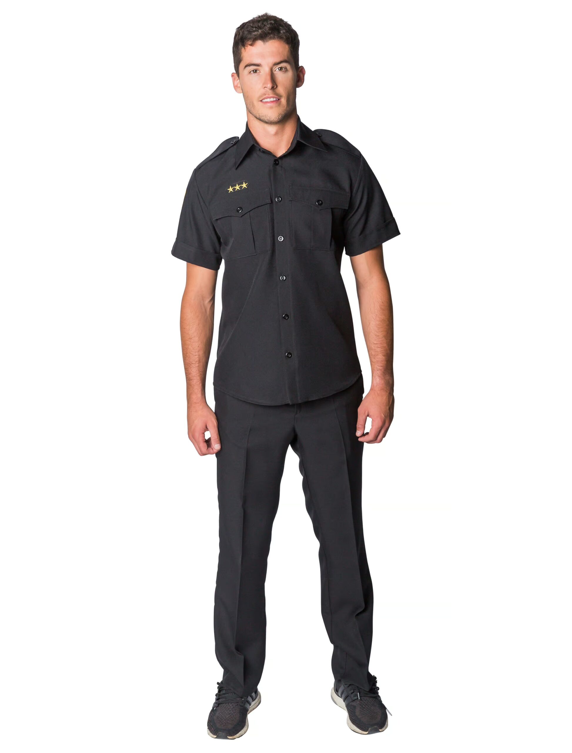 Dieses Kostüm macht Dich zum Held und Herzensbrecher! Das Herren Polizei Kostüm besteht aus einem schwarzen Hemd und einer schwarzen Hose. Beide Kleidungsstücke sind im amerikanischen Stil gefertigt und überzeugen durch den bequemen und zugleich schicken Schnitt. Die Brust des Hemds wird von drei goldenen Sternen geziert. Der edle Look des Hemds wird durch die Schulterklappen, den Kragen und die Knopfleiste gekonnt abgerundet. Ein Kostüm, das nicht nur Du, sondern auch alle Frauen lieben werden!