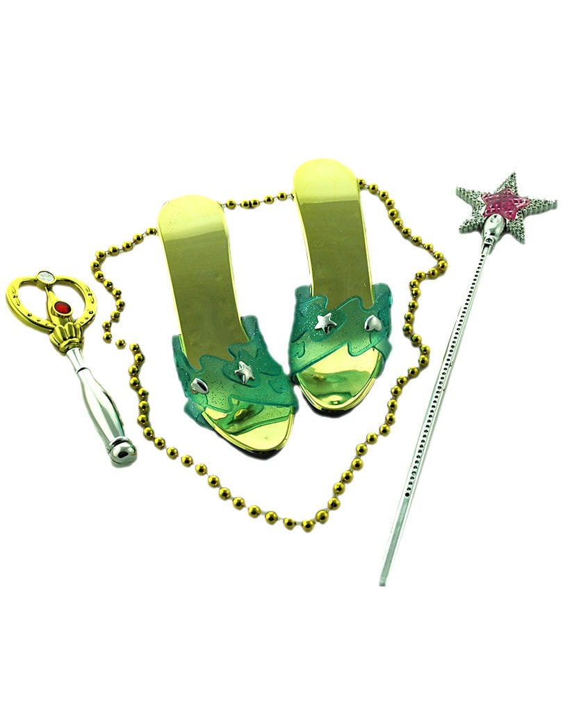 Prinzessinnen Zubehör blauDu möchtest den Traum aller kleiner Mädchen wahr werden lassen? Mit diesem Prinzessinnen Zubehör kommst du dem einen großen Schritt näher, denn es enthält alles, was dich als waschechte Adlige auszeichnet. Das Prinzessinnen Zubehör blau beinhaltet ein paar Schuhe, einen Zauberstab, ein Zepter sowie eine Halskette. Es eignet sich aber auch hervorragend für Feen Kostüme. Lieferumfang: 1 x Prinzessinnen Zubehör blau Inhalt: Schuhe, Zauberstab, Zepter und Halskette Farbe: Blau / Silberfarben / Goldfarben Größe: ca. Gr. 33 Material: Kunststoff
