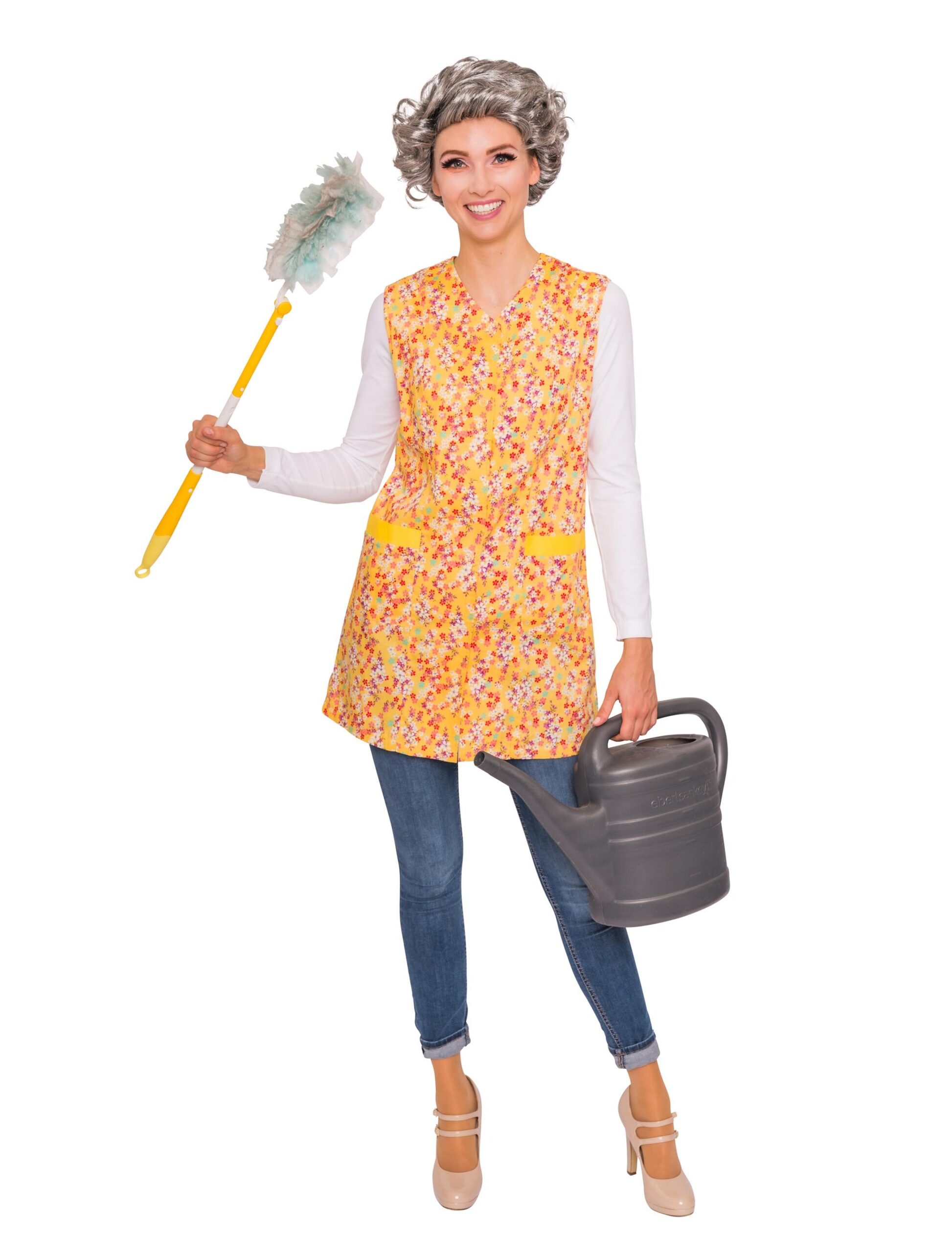 Dieser Putzkittel verzaubert alle Blumenfreunde. Der modische Schnitt und die bunten Blümchen sorgen für gute Laune. Die gelben Taschen runden den stylischen Look perfekt ab. Ob geschlossen oder offen getragen, mit diesem Kittel kannst Du nichts falsch machen. Für Zuhause oder auf Kostümpartys, mit diesem Putzkittel bist Du ein Blickfang zu jedem Anlass. In dem fröhlichen Outfit wird Dir der nächste Hausputz wie von Zauberhand gelingen.