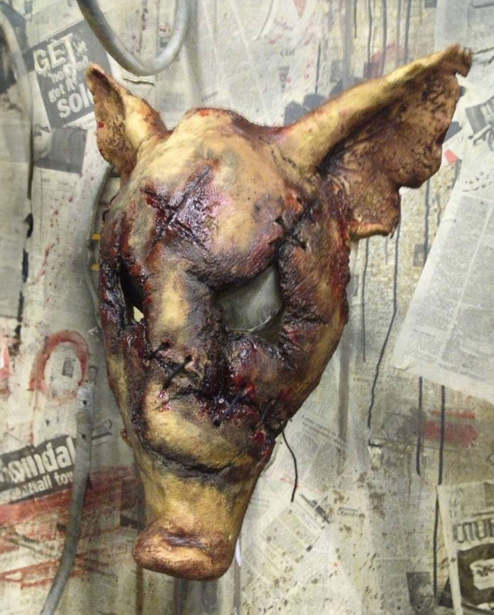 Verweste Schweinekopf Maske Schlachthaus Schweinemaske mit Wunden Hol dir die verweste Schweinekopf Maske als Zubehör für Horrorkostüme! Trage diese unheimliche Schlachthaus Maske, wenn du deine Freunde an Halloween durchs Maisfeld jagst und sorge für Angst und Schrecken! Die Schweinemaske ist unbehaarte, verfault und super realistisch gearbeitet. Sie besteht aus hochwertigem Latex, Kunsthaar, Polyester und Metall. Die Halbmaske wird am Hinterkopf mit größenverstellbaren Bändern aus stabilem Stoff gehalten. Lieferumfang: 1 x Verweste Schweinekopf Maske Farbe: Braun, Beige, Rot, Schwarz Größe: Halbmaske Material: Latex, Polyester, Metall Realistisch aussehende Horrormaske eines toten Schweinekopf Schlachtschwein Halloween Kostümzubehör Schweinemaske mit blutigen Augen und Verstümmelungen Augenpartie liegt frei für gute Sicht der Schauspieler Am Hinterkopf mit größenverstellbaren Bändern aus stabilen Stoff gehalten Horror Tiermaske für Fans des Tierhorrors Als Halbmaske, fantastisch für den Einsatz im Geisterhaus und Maislabyrinth Echtes Unikat- handgefertigt, sehr detailverliebt