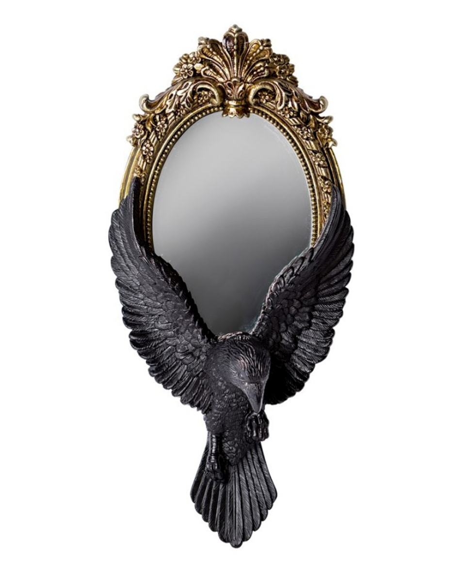Raven’s Gaze Handspiegel als Gothic Wohnaccessoire 23 cm Raben Handspiegel mit Gold-Borte als Gothic-Wohnaccessoire Dieser mystische Raven’s Gaze Handspiegel offenbart den Blick in die Tiefen deiner Seele. Erlebe Magie und Mystik, wenn der Handspiegel im Einsatz ist und erkenne deine wahre Natur. Der Raven’s Gaze Handspiegel als Gothic Wohnaccessoire ist aus Kunststein gefertigt und verfügt über einen goldfarbigen Barockrahmen und einen kunstvoll designten Handgriff. Lieferumfang: 1 x Raven’s Gaze Handspiegel als Gothic Wohnaccessoire 23cm Farbe: Gold, Schwarz Größe: ca. 23 x 10,8 x 4 cm Gewicht: 250 g Material: Polyresin (Kunststein), Glas Blickt in die Tiefen der Seele Bezaubernder Gothic-Handspiegel im Antik-Design Mit viel Liebe zum Detail gefertigt, zeigt er einen Raben in einem opulenten Barock Rahmen in Gold Exquisites Gothic Wohnaccessoire für dein Boudoir, Schmink- und Frisiertisch