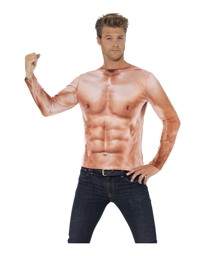 Muskel Imitations Shirt Dank diesem Muskel Imitations Shirt wirst perfekten Athleten Für den optimalen Waschbrettbauch fehlt dir noch etwas Training? Dann gönne dir das realistische Muskel Imitations Shirt für die Zeit, bis deine Muckis nachziehen. Dieses Longsleeve mit langen Ärmeln überzeugt durch ideal imitierenden Sublimationsdruck. Als Motiv zieren große Brustmuckis, Six-Pack, starke Arme und ein muskulöser Rücken Vorder- und Rückseite. Lieferumfang: 1 x Muskel Imitations Shirt Inhalt: Sweat Shirt mit Sublimationsdruck Farbe: hautfarben Größe: M, L Material: 100% Polyester Muskel Longsleeve für Männer Größe M L Brustumfang ca. 97-102 cm ca. 107-112 cm Taillenumfang ca. 81-86 cm ca. 91-97 cm Achtung: Der Artikel ist ein Kostüm für Erwachsene und kein Spielzeug. Nicht für Kinder unter 3 Jahren geeignet. Kann Kleinteile enthalten, die verschluckt werden können – Erstickungsgefahr. Von Feuer und offenen Flammen fernhalten.