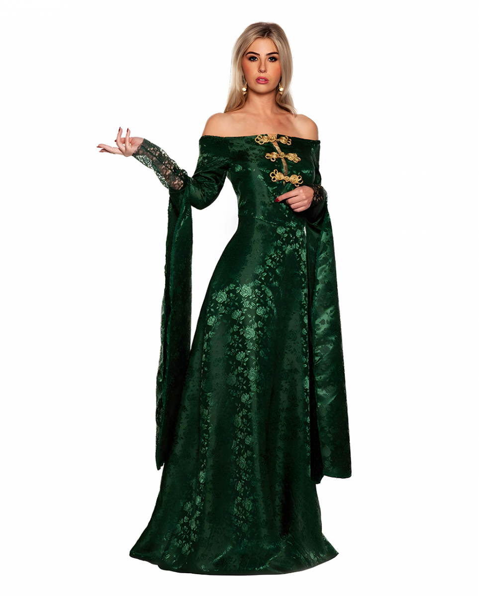 Grünes Renaissance Königin Kostümkleid für Damen für Fasching und Motto Party Elegantes bodenlanges Mittelalter Kostümkleid mit goldenen Frontverschlüssen und Spitzenärmeln Mit diesem Renaissance Königin Kostümkleid wirst du zum Mittelpunkt jeder Mottoparty. Stell dir vor, wie du in dem grünen Kostümkleid mit den goldenen Verschlüssen alle Blicke auf dich ziehst. Die Spitzenärmel verleihen dir einen königlichen Touch. Das grüne Renaissance Königin Kostümkleid für Damen besteht aus 100% Polyester und beinhaltet ein Kostümkleid. Das Material sorgt dafür, dass das Kostüm angenehm zu tragen ist und auch nach vielen Partys noch seine Form behält. Lieferumfang: 1 x Grünes Renaissance Königin Kostümkleid für Damen Inhalt: 1x Kostümkleid Farbe: Grün, Gold Größe: S, M, L, XL Material: 100% Polyester Elegantes Kostümkleid mit goldenden Verschlüssen Edle Spitzenärmel mit Trompetenärmel ähnlicher Verzierung Historisches Kostüm für Themenpartys und Fasching Verkleide dich an Karneval als Mittelalter Herrscherin Schmuck nicht enthalten Größen: S (34-36) M (38-40) L (42-44) XL (46-48) Brustumfang: ca. 89 – 93 cm ca. 93 – 98 cm ca. 100 – 103 cm ca. 109 -112 cm Taillenumfang: ca. 65,5 – 68 cm ca. 70,5 – 73 cm ca. 76,5 – 84 cm ca. 86 – 88 cm Hüftumfang: ca. 92 – 95 cm ca. 96 – 99 cm ca. 102 – 109 cm ca. 113 – 115 cm Der Artikel ist ein Kostüm für Erwachsene und kein Spielzeug. Nicht für Kinder unter 3 Jahren geeignet. Kann Kleinteile enthalten, die verschluckt werden können – Erstickungsgefahr. Von Feuer und offenen Flammen fernhalten.