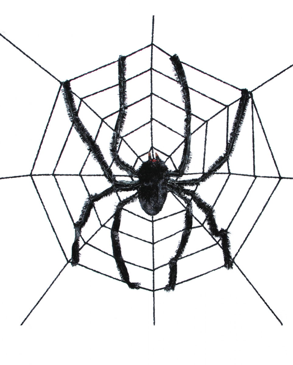 Horrorspinne im Netz als Halloween dekoration 240 cm Riesige Halloween-Deko für Horrofans Mit der Horrorspinne im Netz haben wir ein besonders gigantischen Exemplar für deine Halloween-Party im Sortiment. Die schwarze Horrorspinne im Netz hat einen Gesamtdurchmesser von ca. 240 cm und ist so die perfekte Deko für Türen, Fenster, Bäumen, Gartenhäuser und Dachböden. Der haarige Look der Horrorspinne und die roten Augen sind ein echter Alptraum für Spinnenphobiker. Lieferumfang: 1 x Horrorspinne im Netz Farbe: schwarz Durchmesser: ca. 240 cm Material: Kunststoff