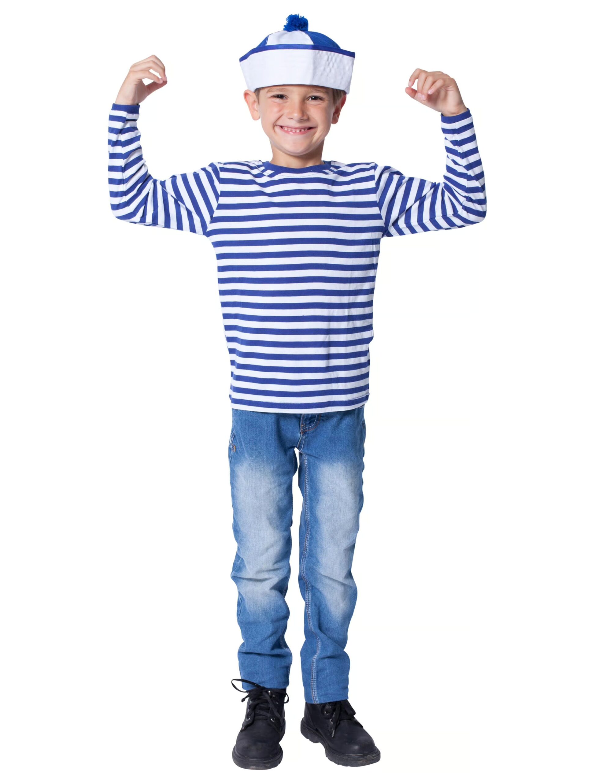 Ringelpulli langarm Kinder blau/weiß 140-152