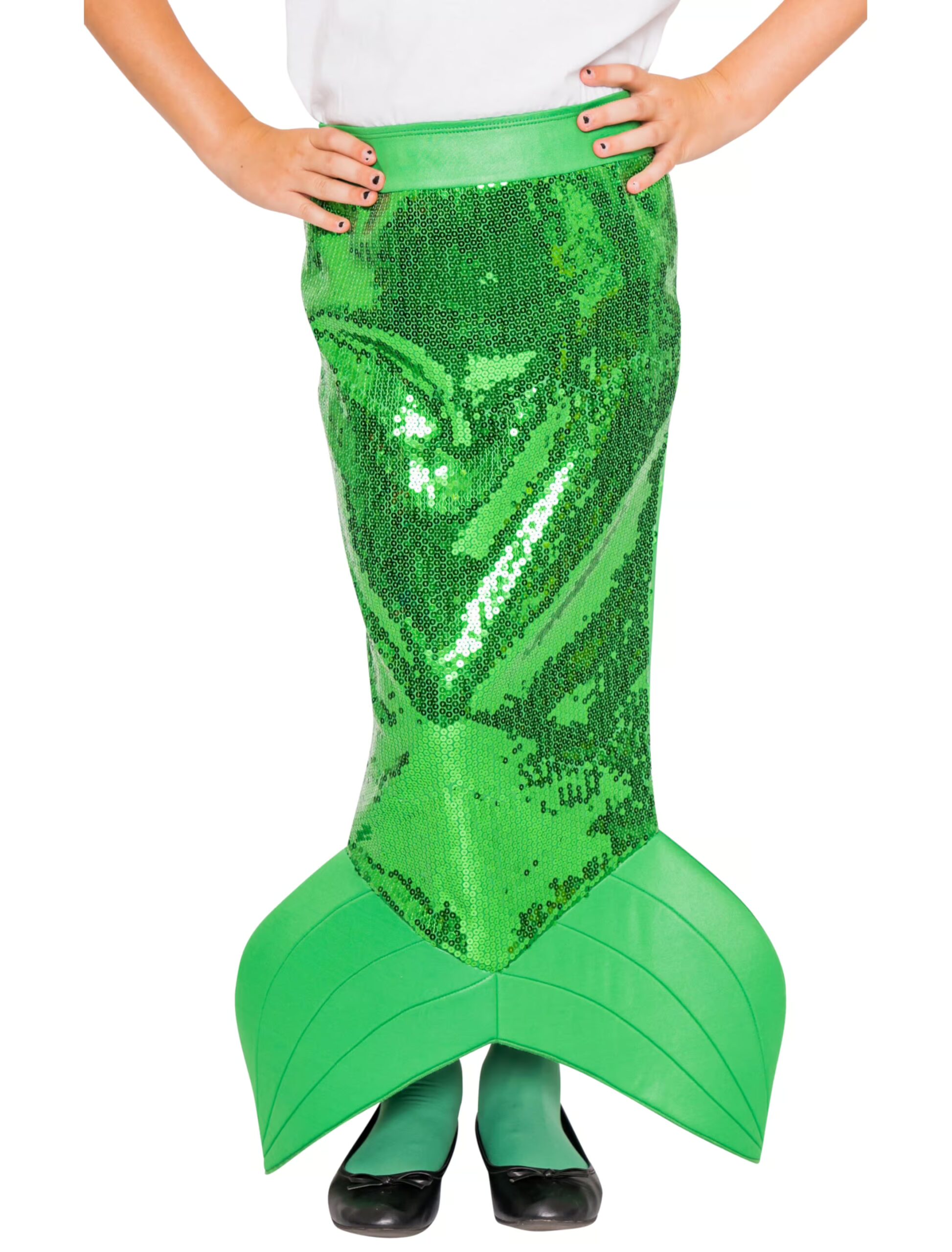 Wolltest Du schon immer mal selbst eine Meerjungfrau sein? Dieser grün schimmernde, aus Polyester bestehende, Rock im Stil einer Schwanzflosse ist das passende Kleidungsstück. Für Kinder, die ihrer Fantasie mehr Wirklichkeit verleihen wollen. Dieser Einteiler reicht von der Hüfte bis zu den Knöcheln. Er liegt eng an und verleiht Dir das Gefühl einer richtigen Flosse. Ob zu Karneval, zum Verkleiden daheim oder bei Freunden, diese Flosse kannst Du zu vielen Anlässen tragen. Passenden Kopfschmuck für die Unterwasserwelt kannst Du in unserem Shop finden. Auf in die Welt der Träume.