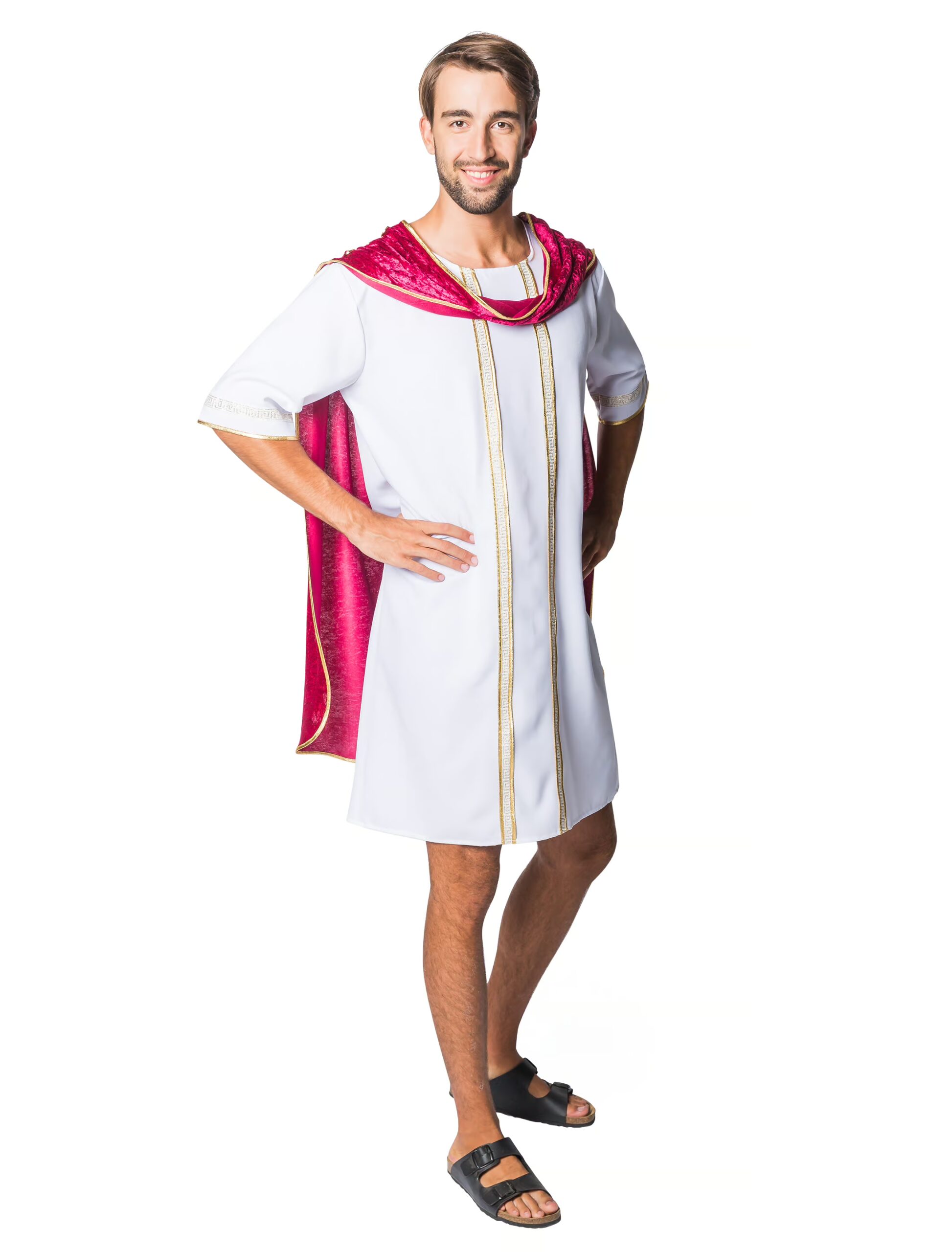 Viel Rom im 21. Jahrhundert! Mit Deinem neuen Römer-Kostüm Claudius verbreitest Du eine kaiserliche Atmosphäre auf jeder Karnevals- und Mottoparty. Das Kostüm für Herren besteht aus einem lockeren, weißen Kleid, das bis zu den Knien reicht und in der Front mit goldfarbenen Nähten verziert ist. Mit Hilfe der beigefügten Kordel kannst Du das Römer-Kostüm rund um Deine Hüften fixieren. Der ebenfalls zum Kostüm gehörende Umhang, der an dem Kleid vernäht ist, besteht aus einem glänzend-roten Stoff, der passend zum Kleid ebenfalls mit goldfarbenen Nähten verziert ist. Mit Haarschmuck und Sandalen verwandelst Du Dich in den schönsten Römer weit und breit! Exklusiv Artikel.