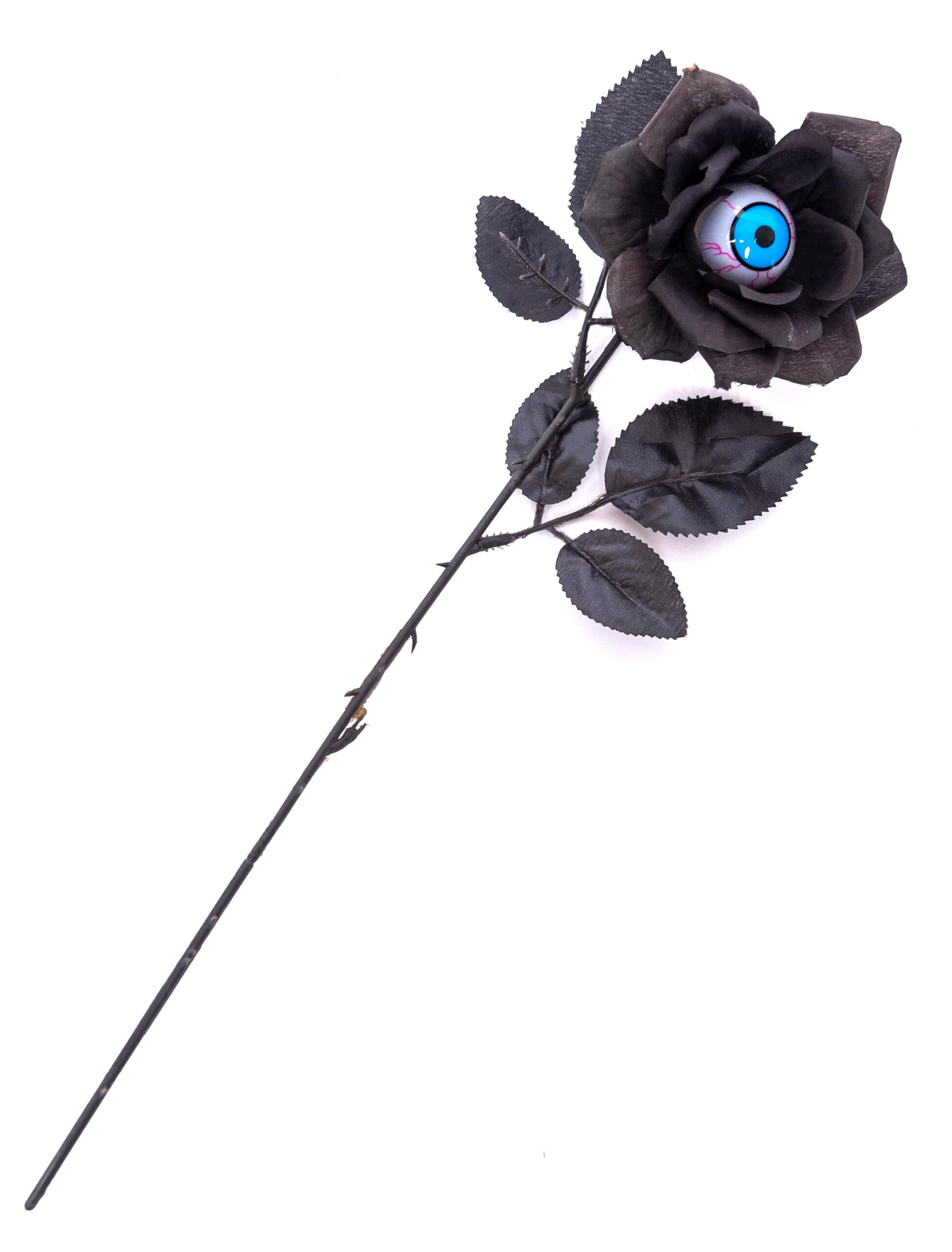 Na wer guckt denn da so unverschämt aus dem Mantel einer dunklen Blume? Direkt aus der Blüte dieser tiefschwarzen Rose lugt ein blaues Auge hervor. Wo mag es wohl hergekommen sein und wie kam es dort überhaupt hin? Vielleicht ist dieses schräge Accessoires ja genau die richtige Begleitung, passend zu Deinem Halloween Kostüm. Schaurige Grüße!